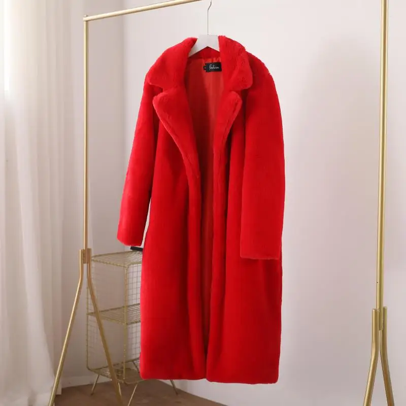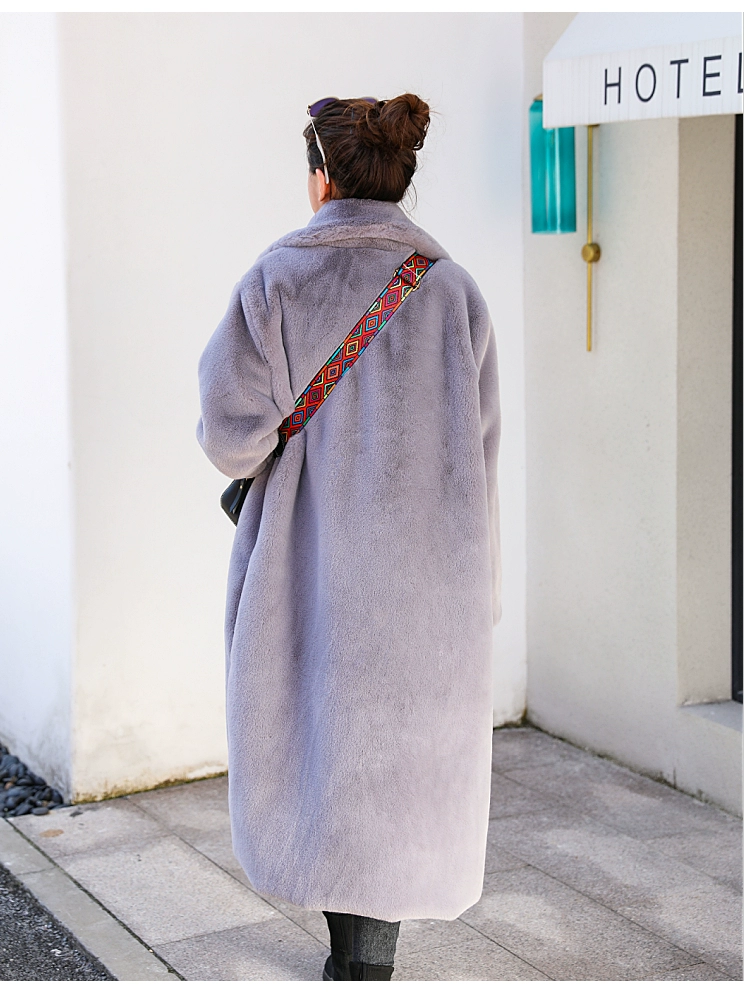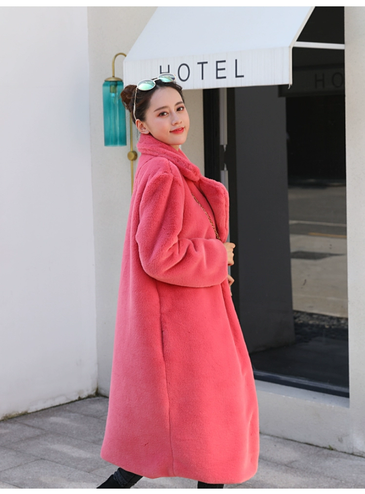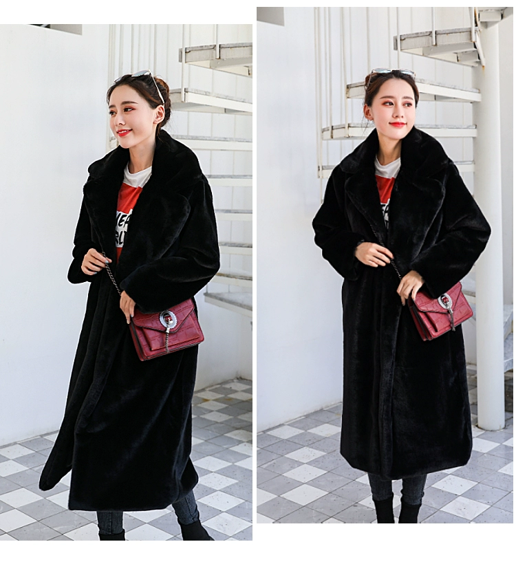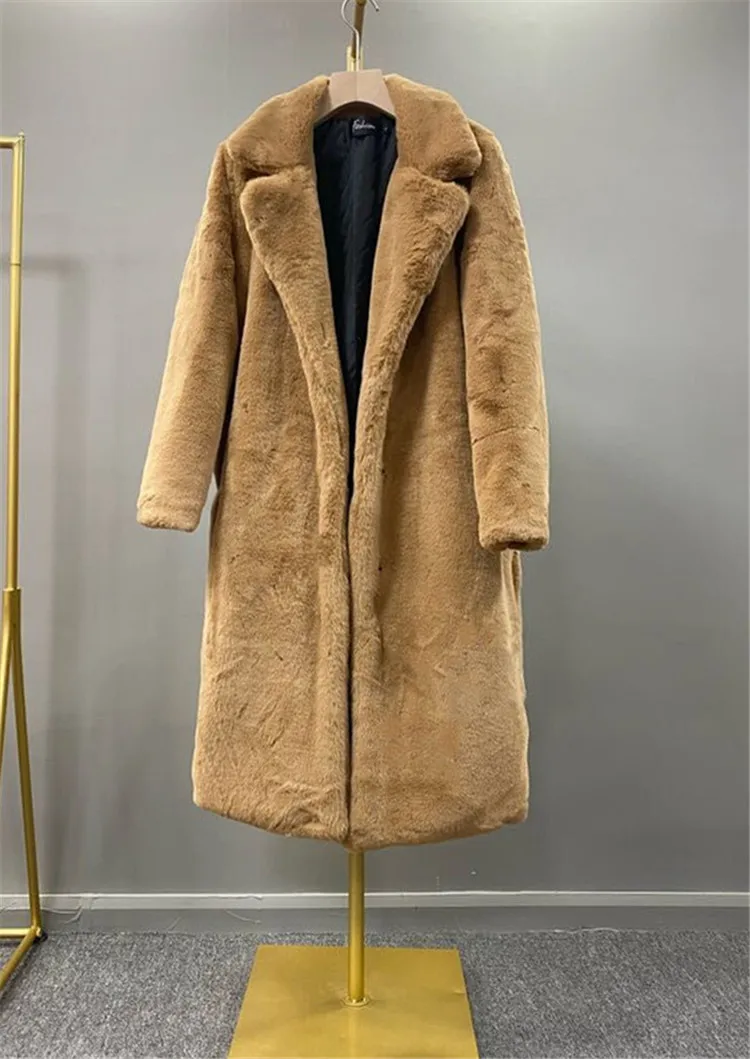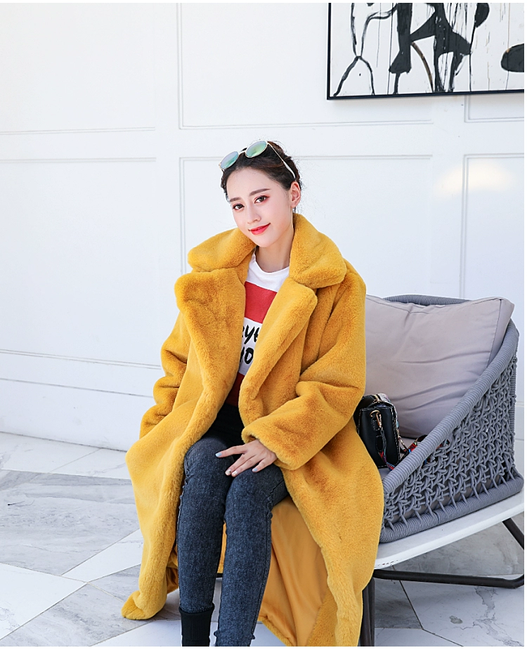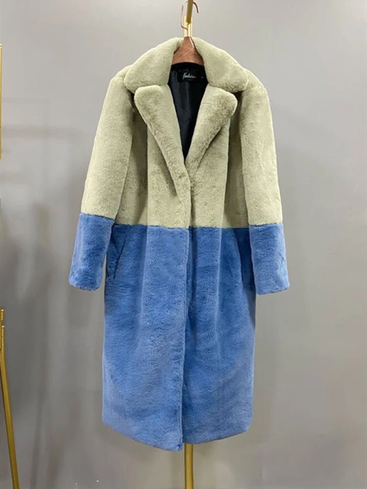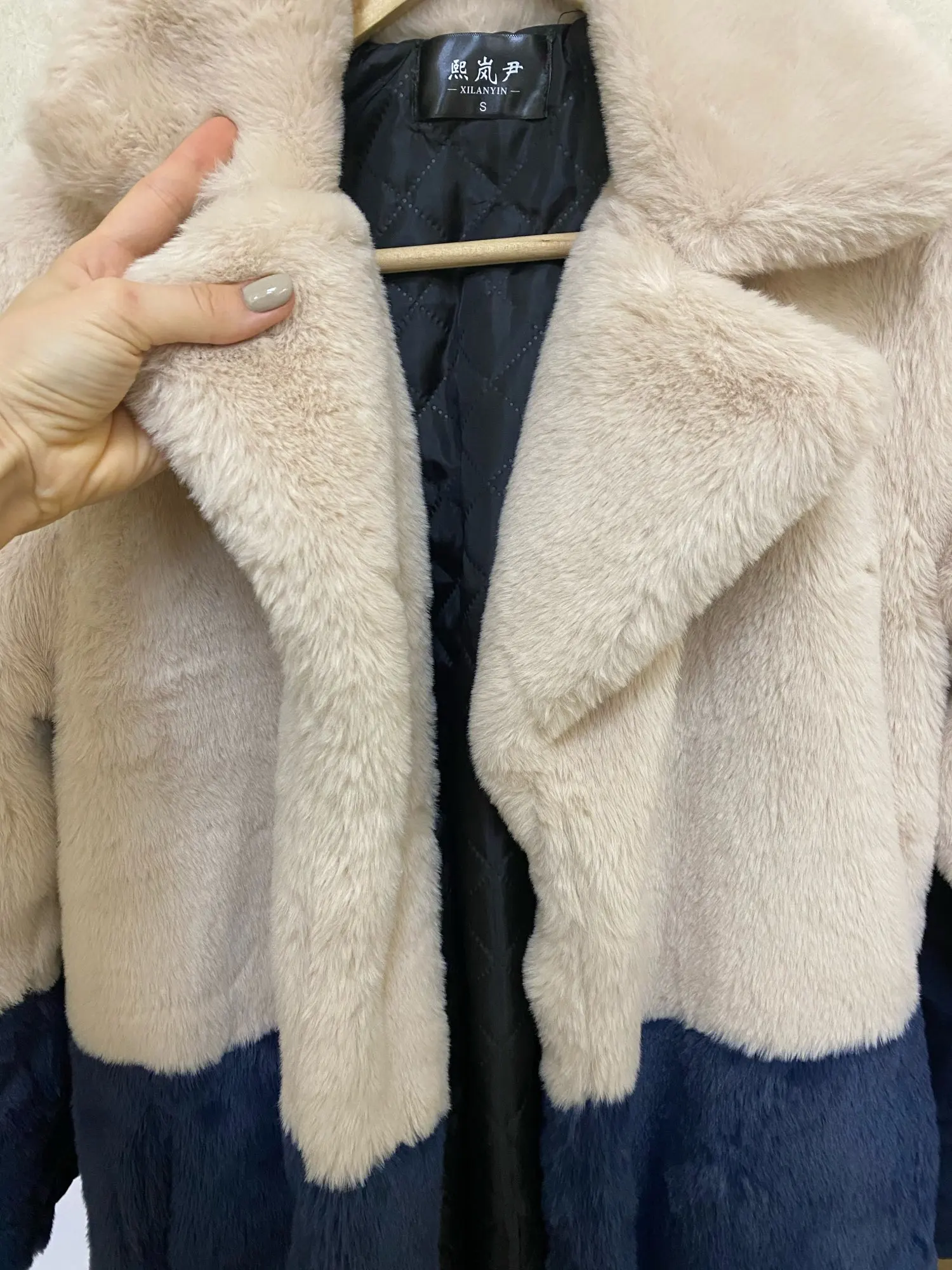 Женская длинная шуба из искусственного кроличьего меха, толстая теплая плюшевая Шуба с лацканами, зимний сезон 2022