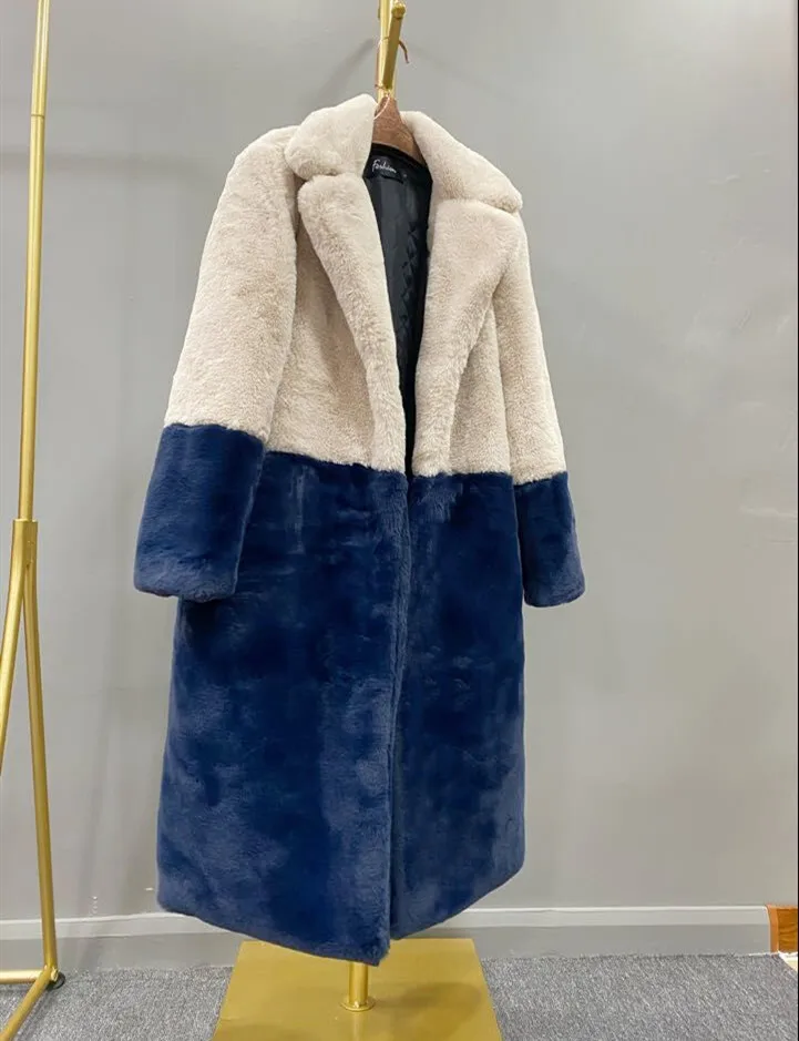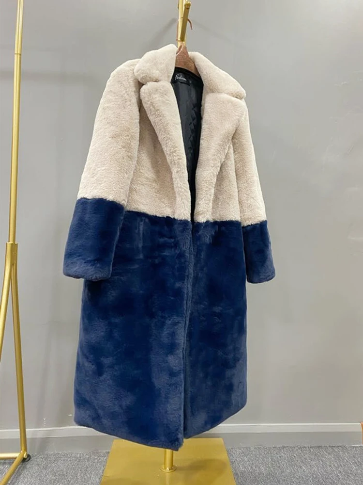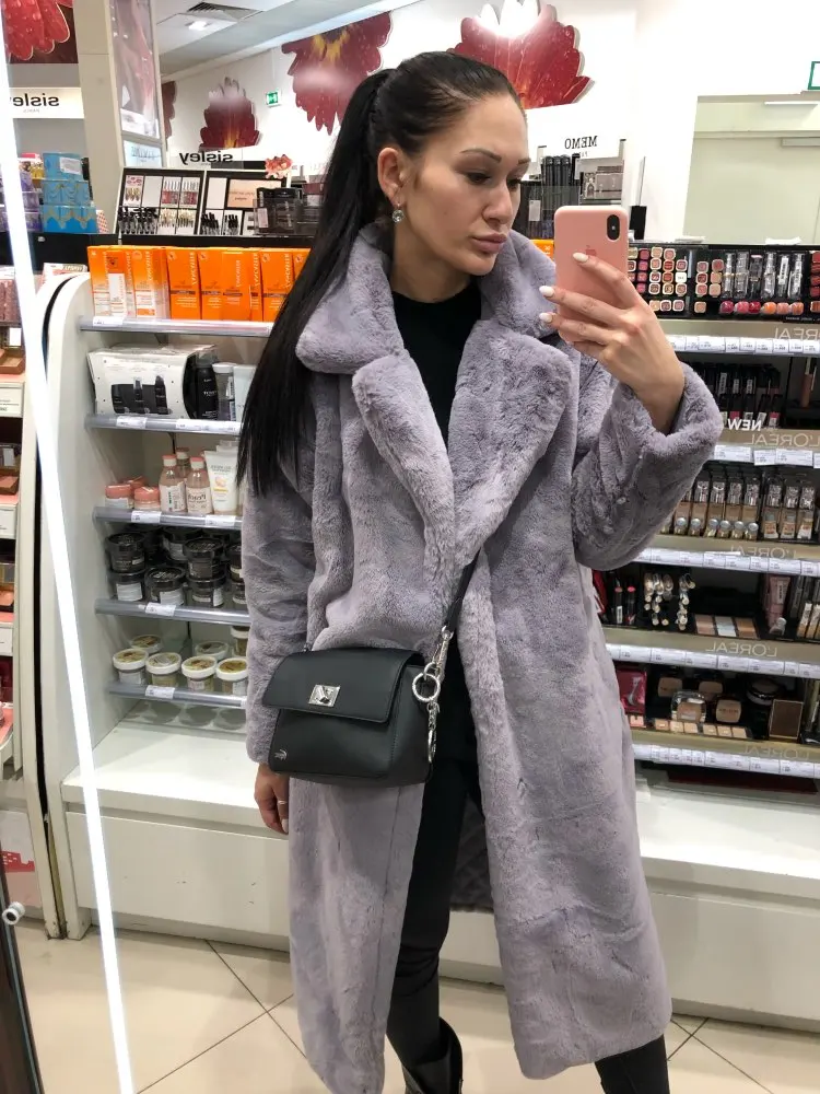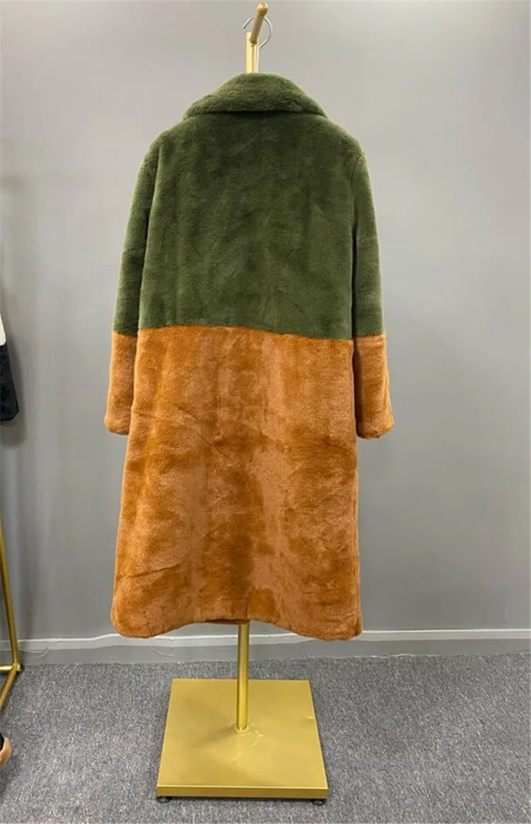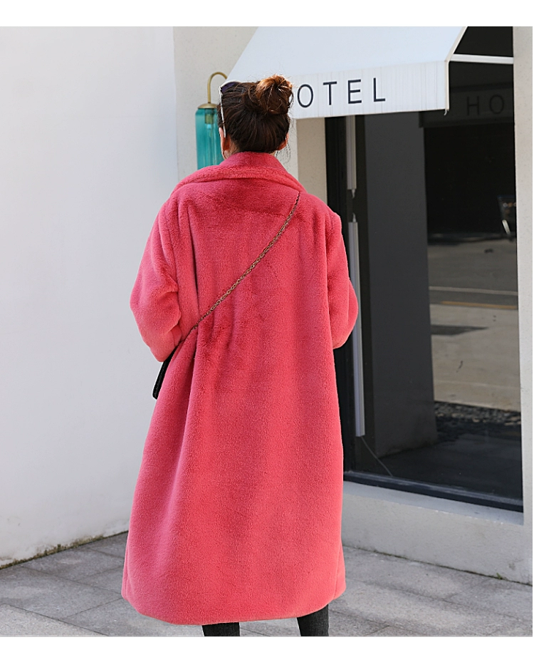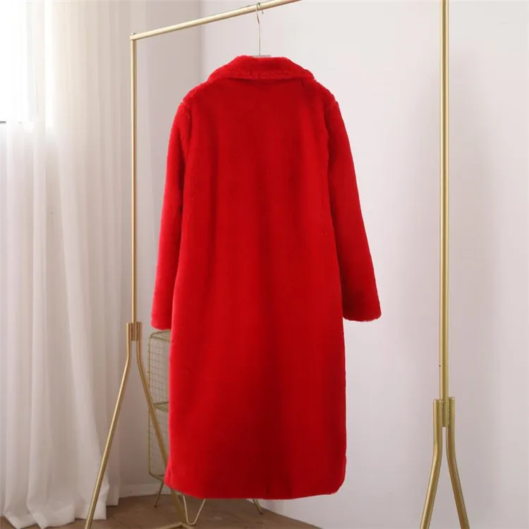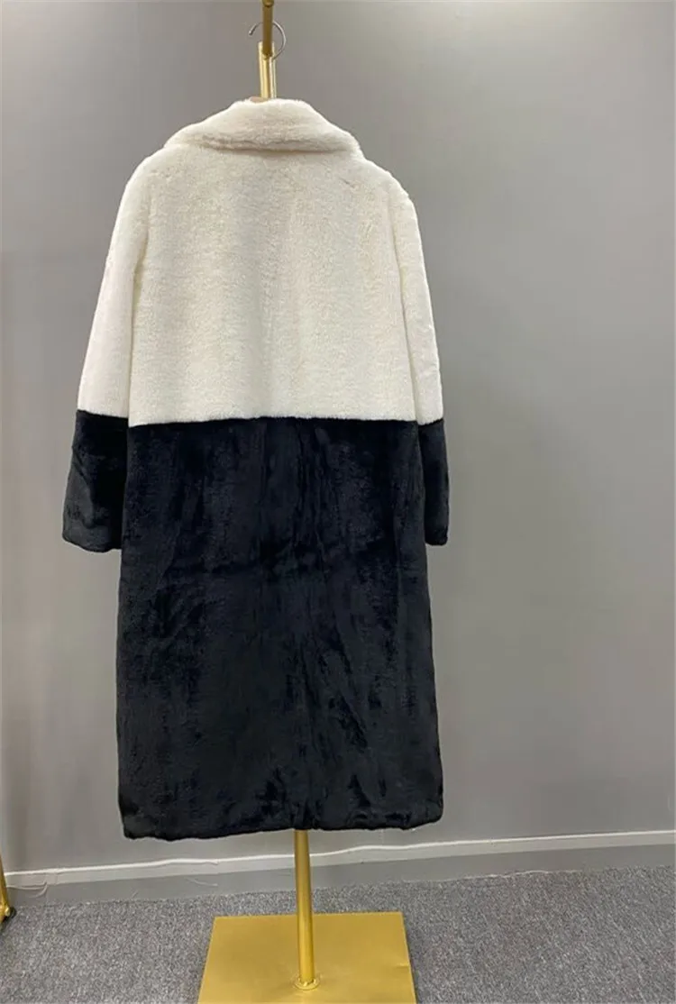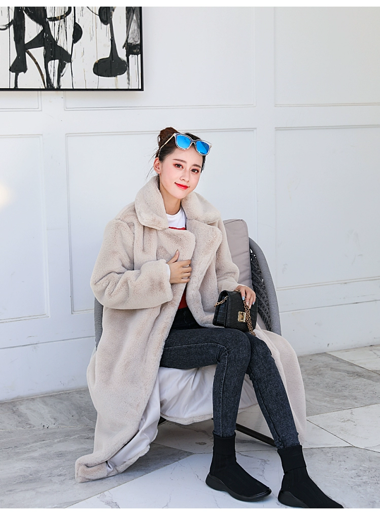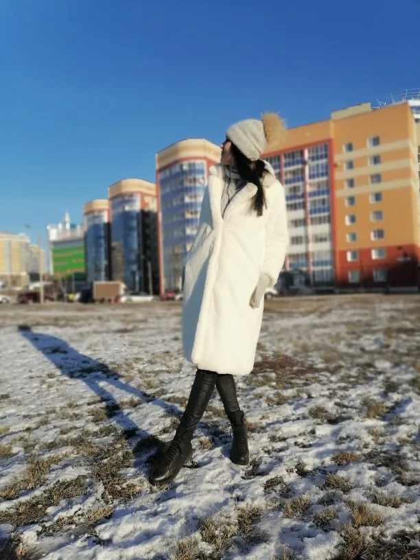 Женская длинная шуба из искусственного кроличьего меха, толстая теплая плюшевая Шуба с лацканами, зимний сезон 2022