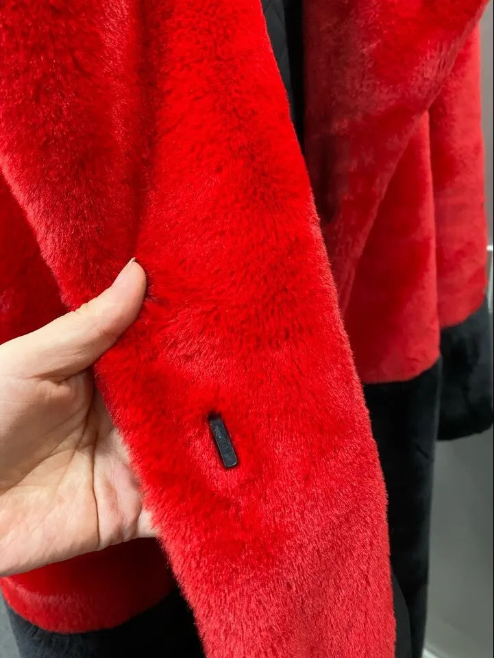 Заказываю вторую шубку.Эта полностью соответствует картинке.До этого брала красную,у неё чёрная подкладка(на фото красная)Шубка мягкая,цвет красивый,доставка быстрая.П.с.на размер 42-44 брала «м» на 52 «3xl» подошли идеально