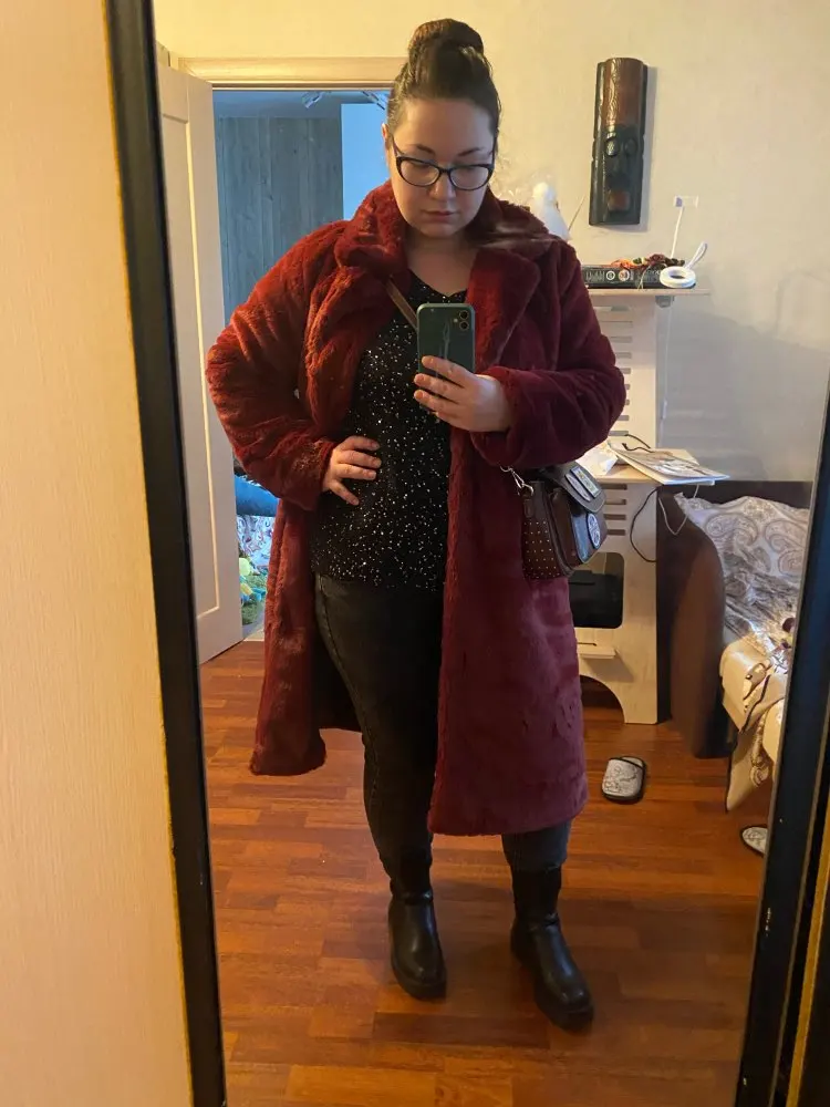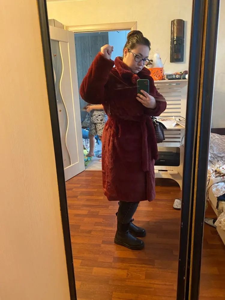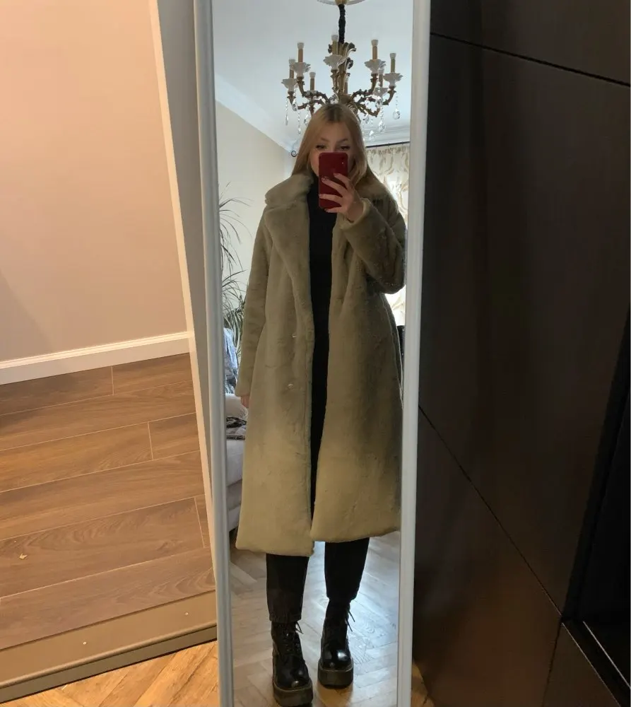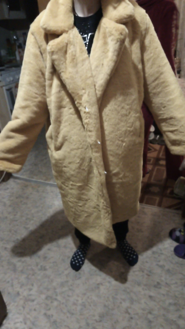 Очень красивое пальто, полученное в течение 13 дней. Очень мягкий искусственный мех. Стеганая подкладка, 3 крючка для закрытия. Цвет идеально подходит к фотографии. Я furiously хочу взять красный и черный
