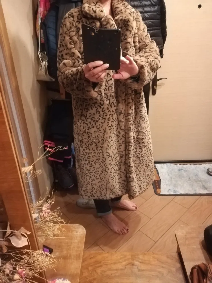 Меховое пальто порадовало, материал качественный, эдакий мягкий плюш а-ля стриженный кролик, на классический леопардовый принт не тянет(что хорошо), скорее анимал. рисунок на бежевом фоне-это фактура и объем. К пошиву, размеру, фурнитуре замечаний ноль. Размер XL тельце 98-78-102,при росте 174 чуть ниже колен. Однозначно рекомендую к покупке. В Мск. около месяца.