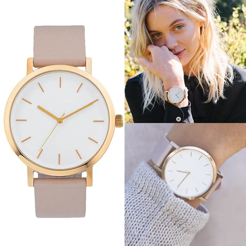 Женские Аналоговые кварцевые наручные часы, минималистичные часы из нержавеющей стали с кожаным ремешком, роскошные часы для женщин, 2019