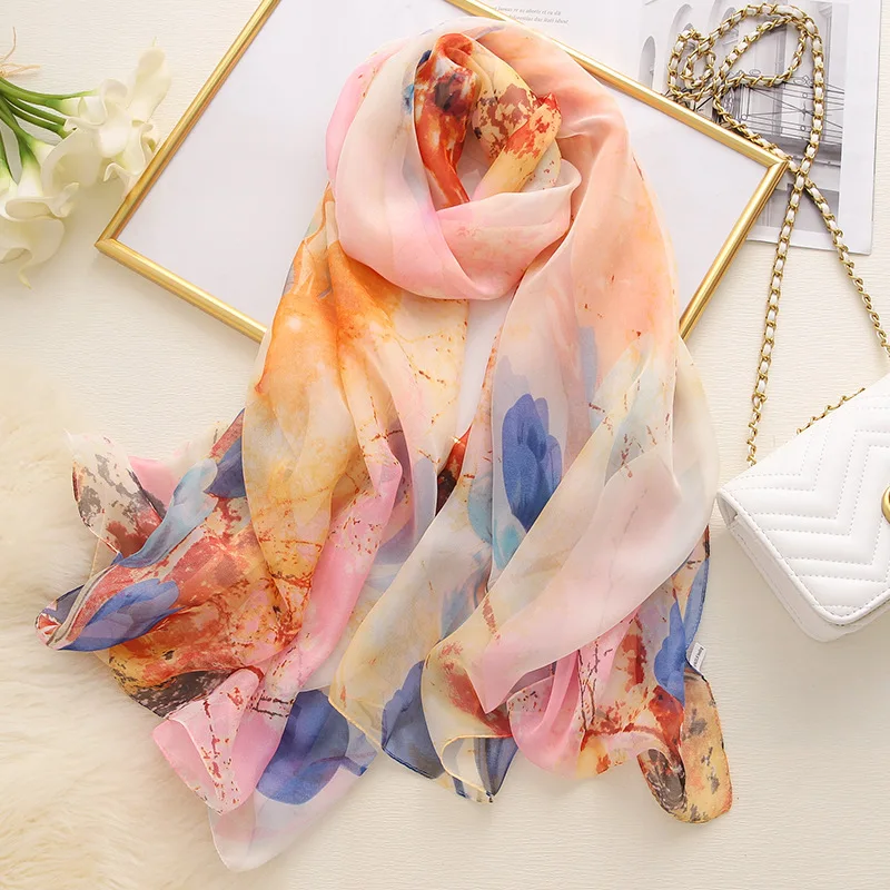Роскошный женский шарф, шелковые шарфы, цветочные женские шарфыUS $7,43