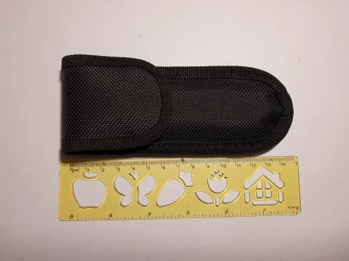 чехол пришёл общей длинной 11,5 см вместо заявленных 13, полезный объём чехла по длине в районе 9,5 см, ни стандартный нож victorinox ни мультитул не влезают, бесполезно выброшенные деньги и время