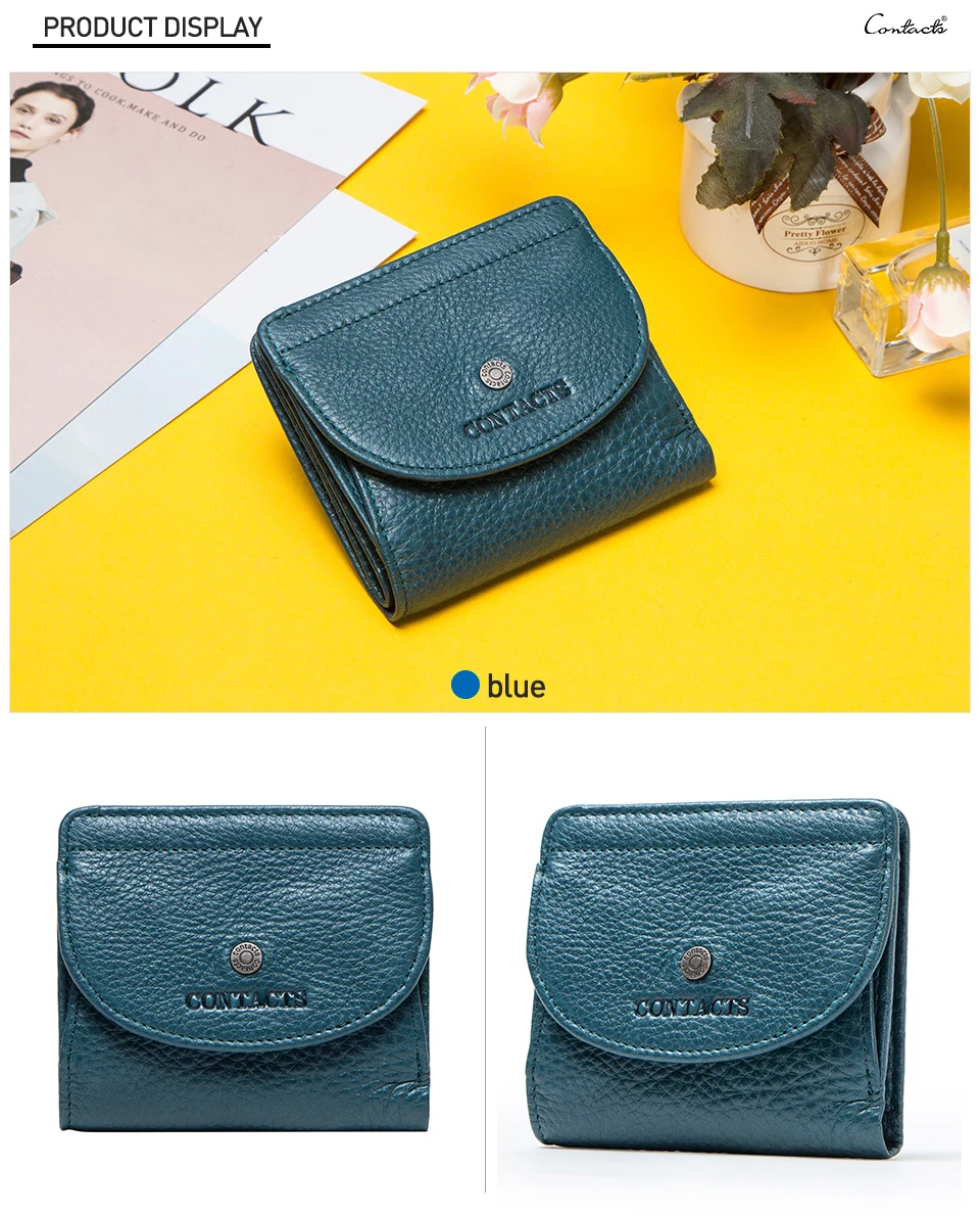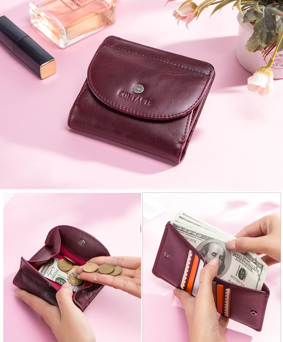 Женские кошельки Contact's из натуральной кожи, короткий бумажник для мелочи, маленькая кредитница для девушек