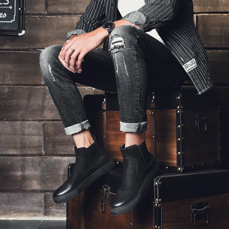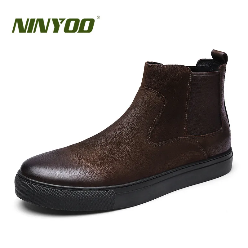NINYOOмодные повседневные ботинки Мартенс; Мужские теплые ботинки из натуральной кожи; Износостойкая Осенняя обувь; Ботинки Челси на меху