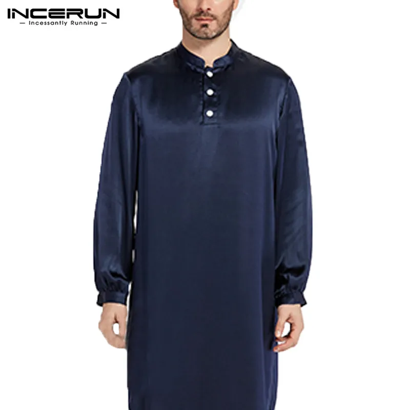 INCERUN Мужская шелковая атласная пижама, мягкий халат с длинным рукавом, Мужская одежда для сна, удобная однотонная повседневная мужская одежда 5XL, 2019