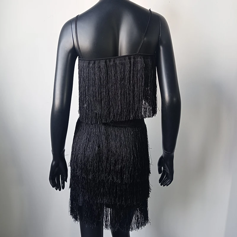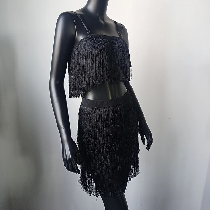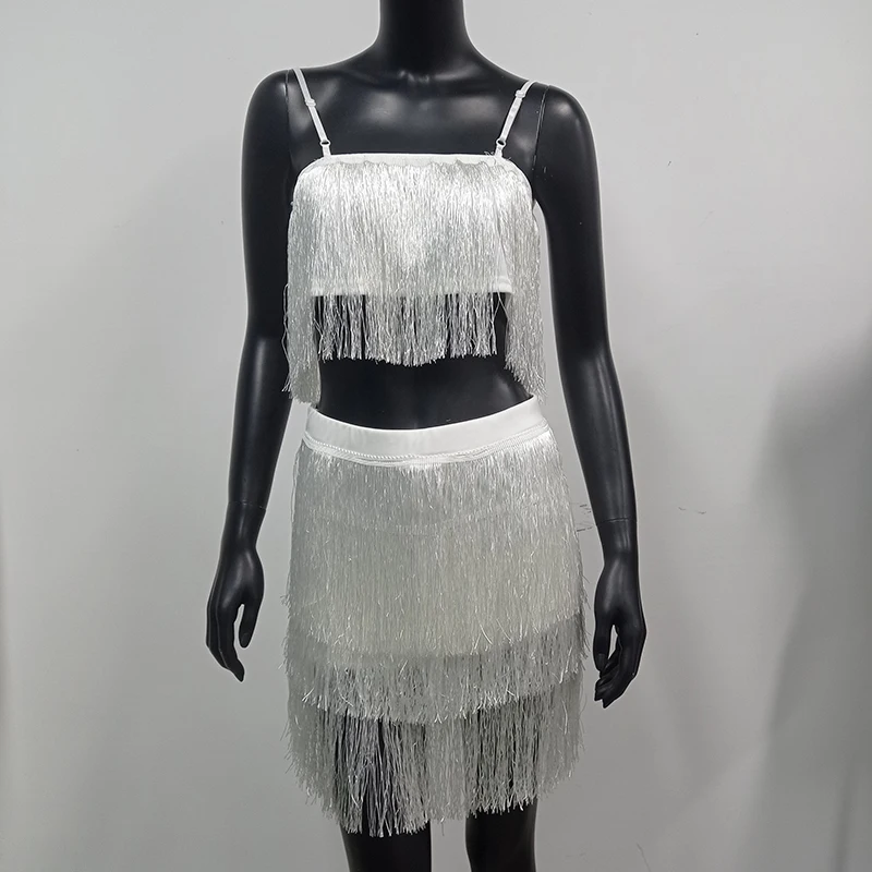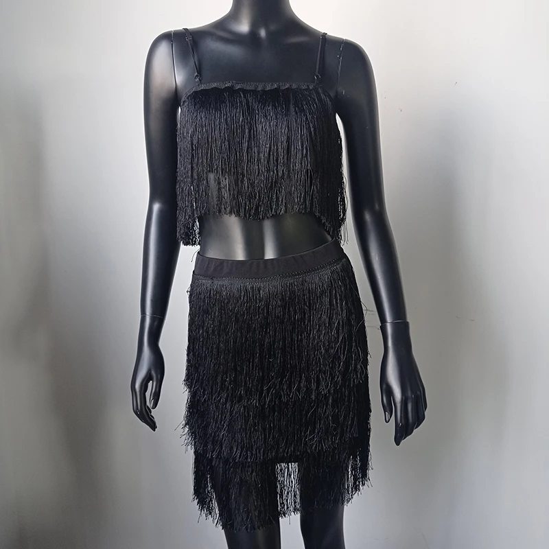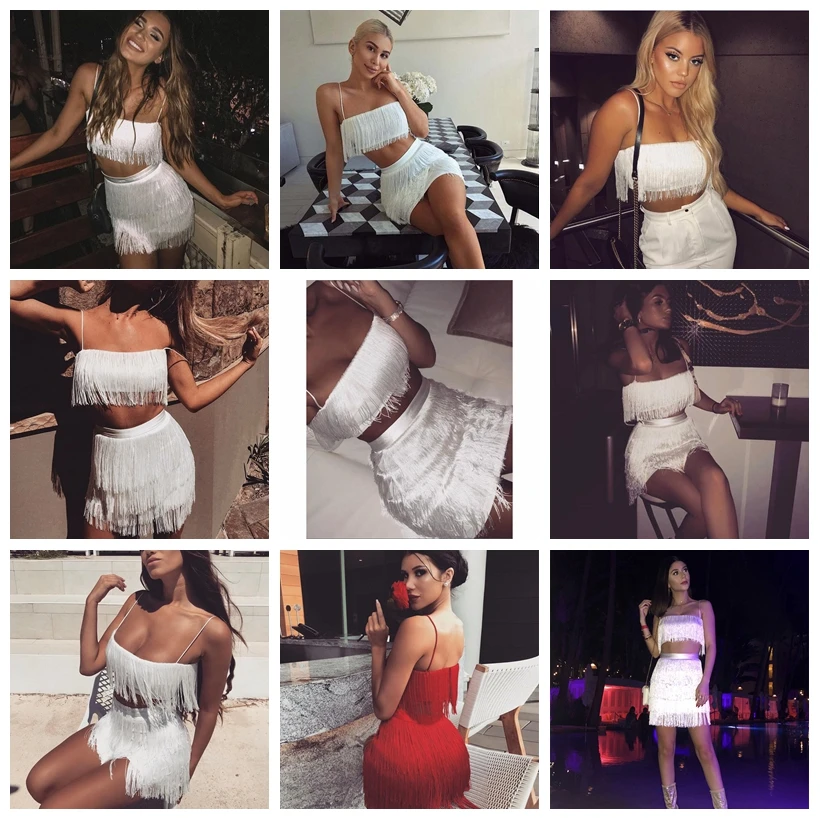 Модный короткий топ на бретельках с кисточками, мини-платье, комплект из 2 предметов, Женский пикантный комплект на бретельках, платья на бедрах, вечерние Клубные костюмы