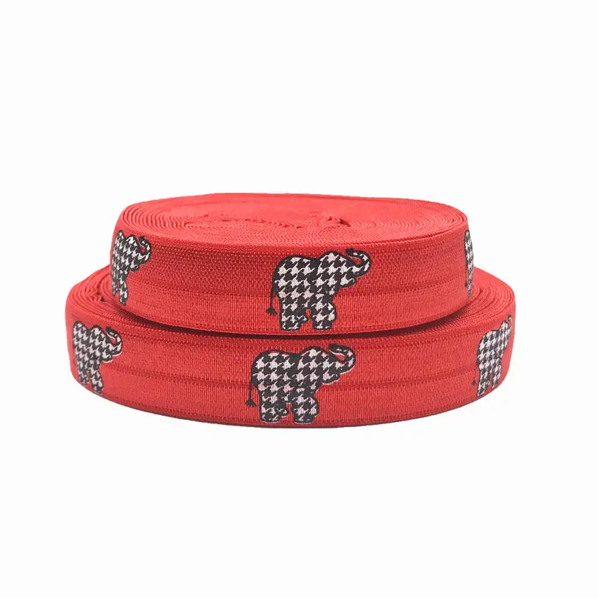 5 ярдов 5/8 "Слон Хаундстут печати FOE сложите над упругой повязка из спандекса Дети волос галстук повязка на голову кружевной отделкой DIY Швейные принадлежности