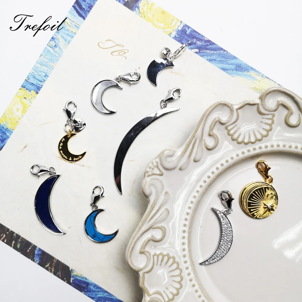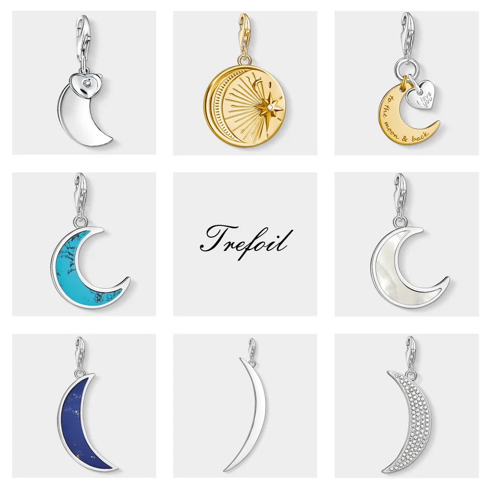Винтажный кулон в виде Луны и звезды, европейская Золотая Модная бижутерия, серебро 925 пробы, подарок для женщин и мужчин, подходит для браслета, ожерелье