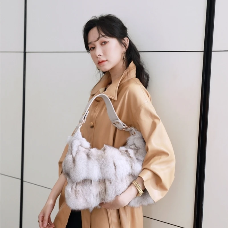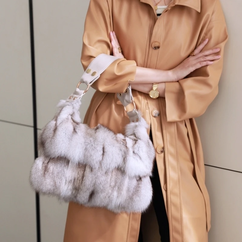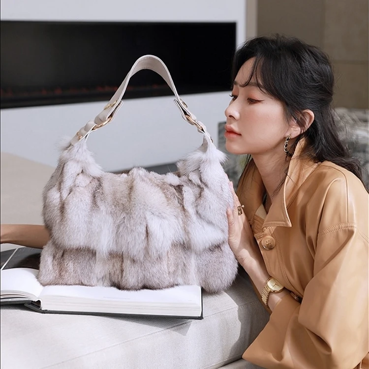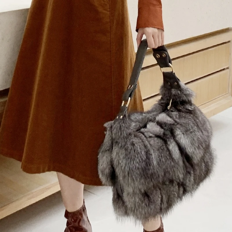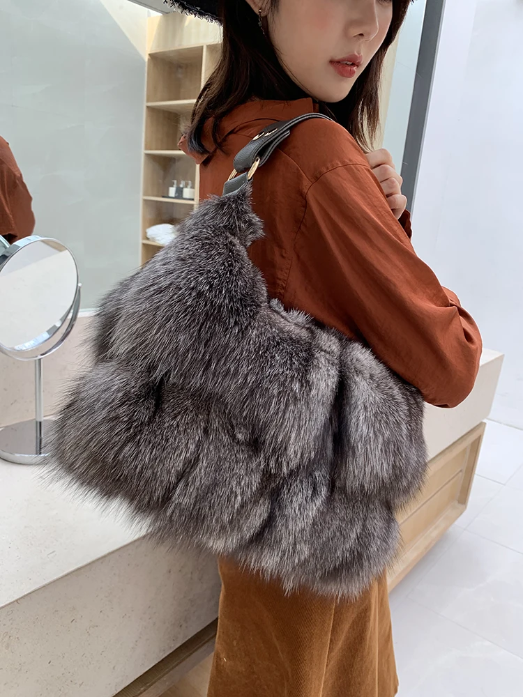 Новинка 2021, сумки FXFURS из натурального Лисьего меха, женские сумки через плечо с сообщениями, большая женская сумка-клатч из серебристого лисьего меха