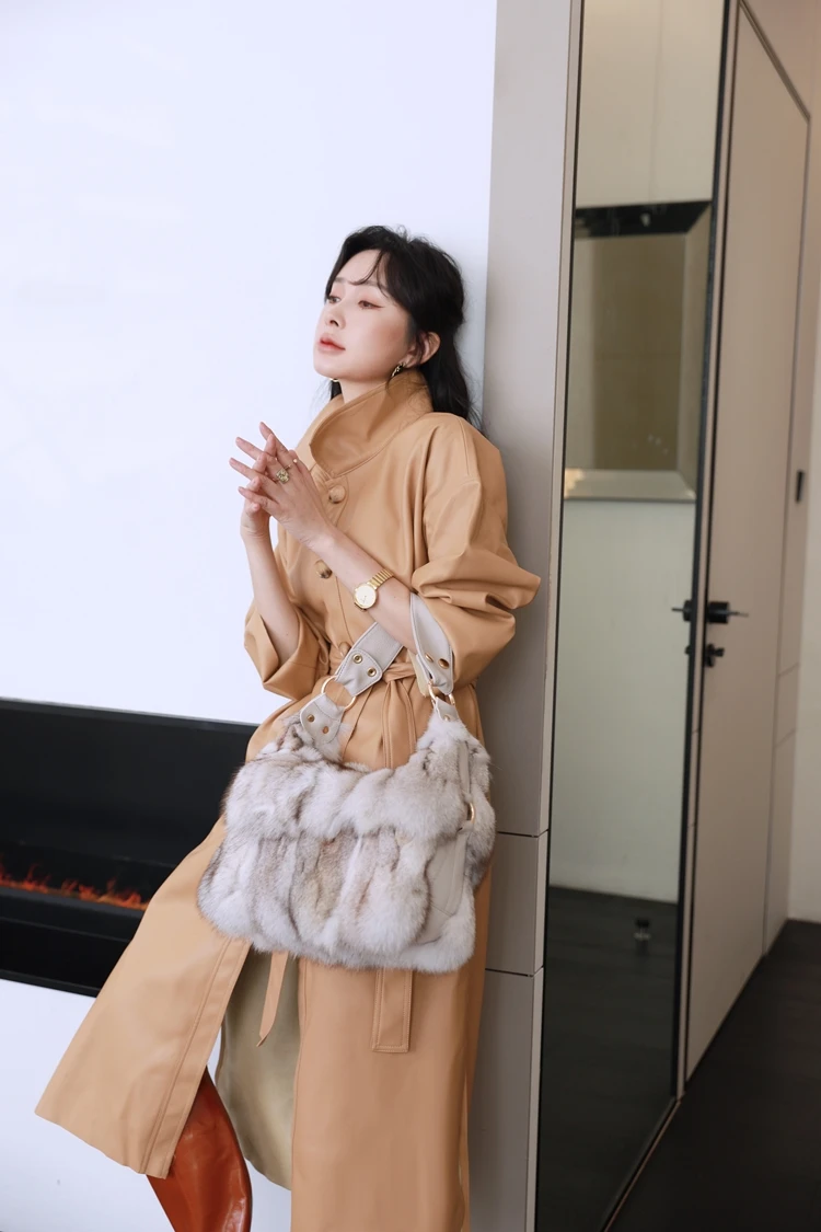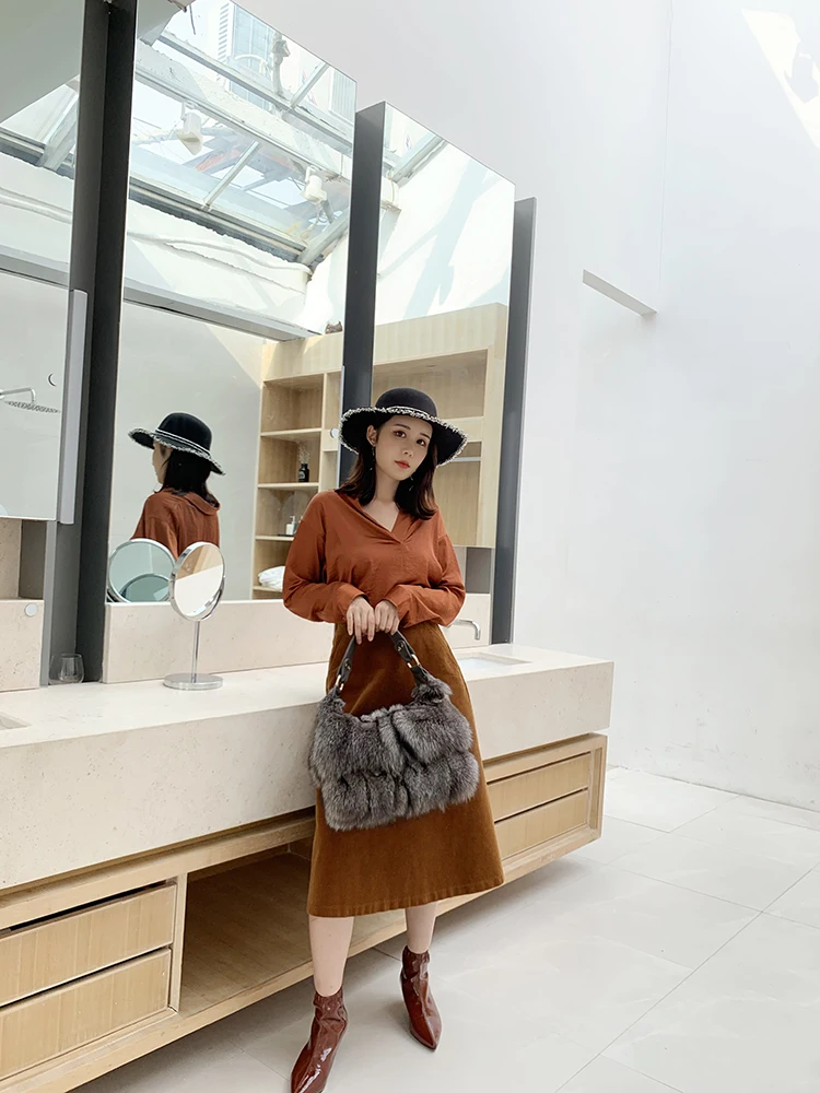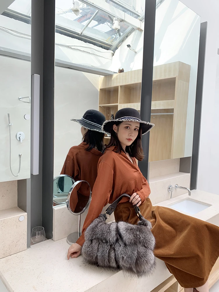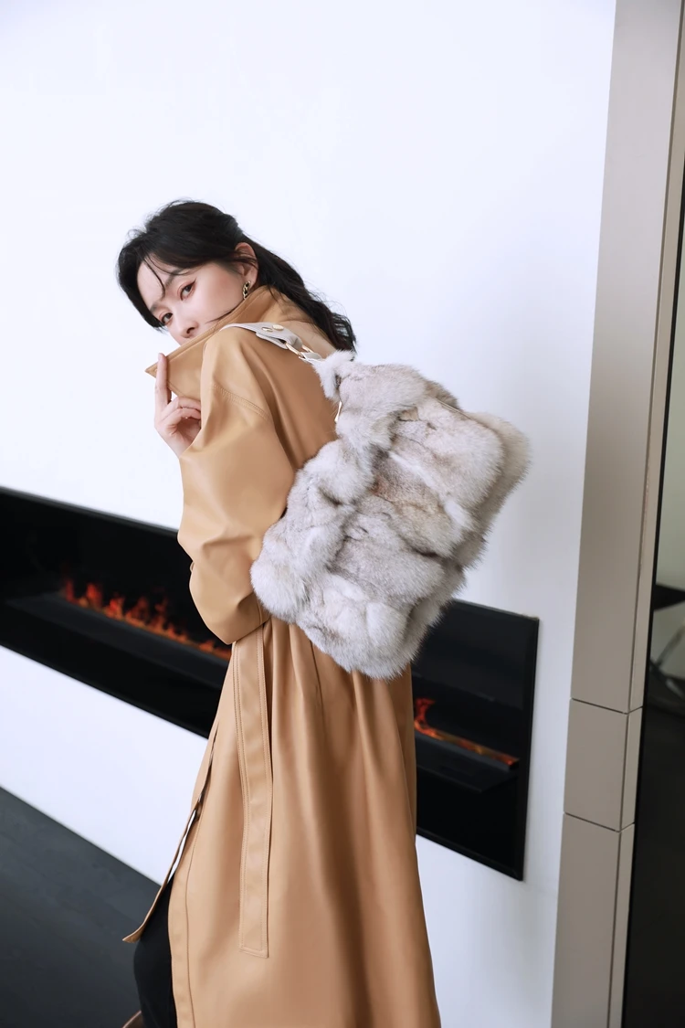 Новинка 2021, сумки FXFURS из натурального Лисьего меха, женские сумки через плечо с сообщениями, большая женская сумка-клатч из серебристого лисьего меха