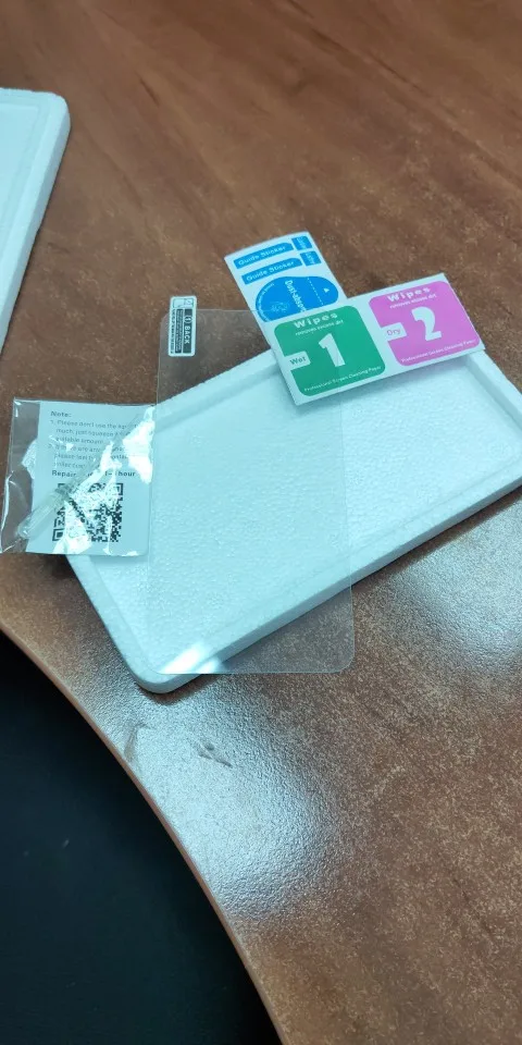 Данным товаром я не доволен, нет выреза для камеры и какие-то остатки воздуха (снизу по середине), как я понял, это для отпечатка пальца, но отпечаток находится выше Зато комплектация нормальная, было 2 салфетки, 1 влажная, 2 сухая и какое-то масло, чтобы по бокам не оставалось воздуха Товар я ждал 2 с половиной месяца, я думал он мне никогда не придёт Продавца я не рекомендую Я начал спор, хотел вернуть пол суммы, потому что товар не такой, как в описании