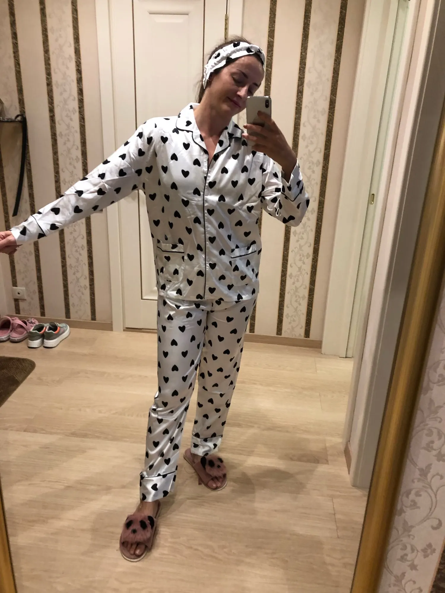 Пижама женская шелковая, с принтом и шортами, на летоосень, 7 предм...