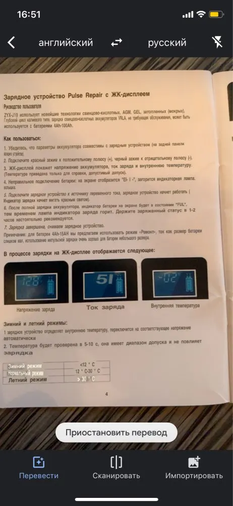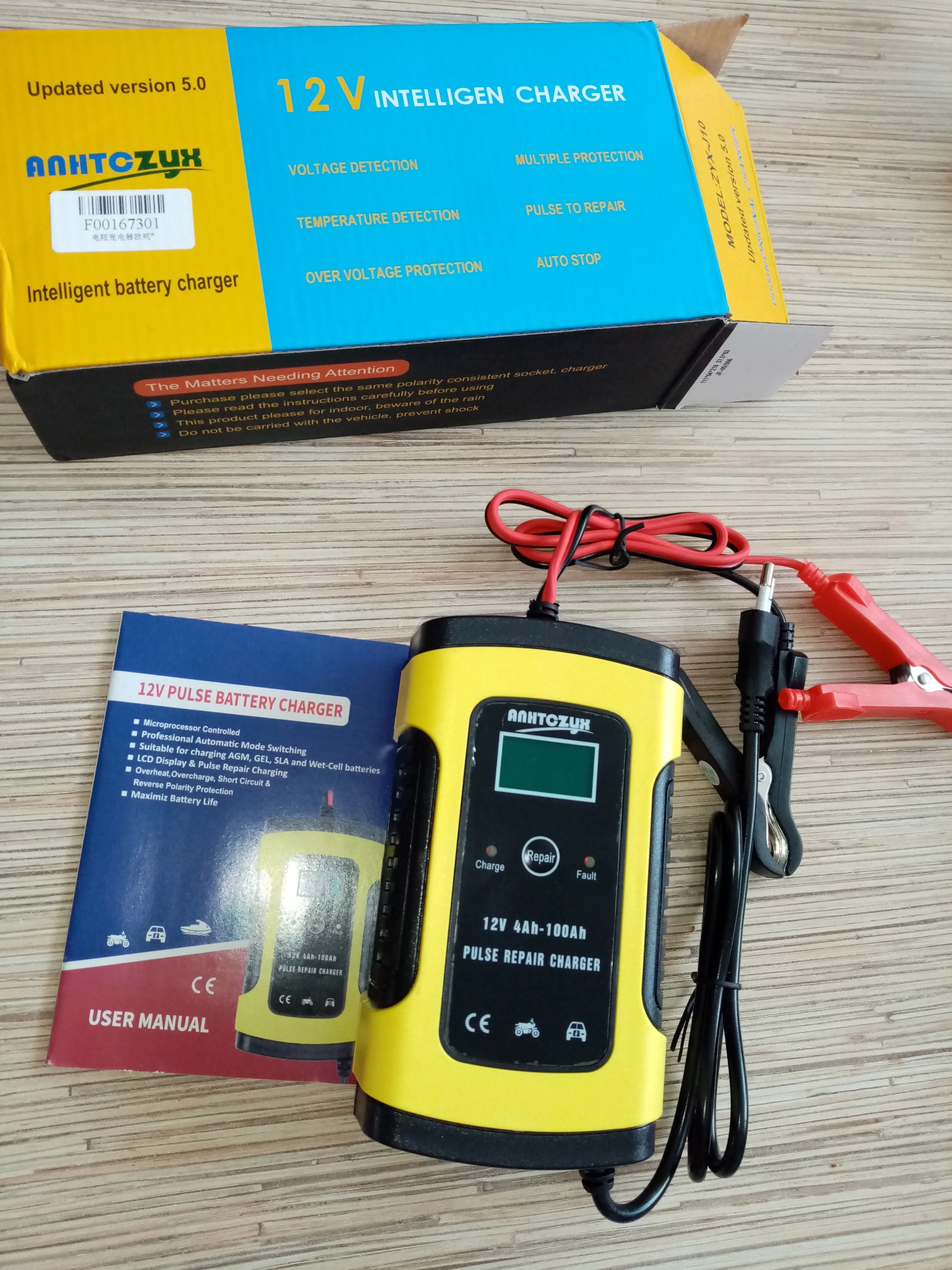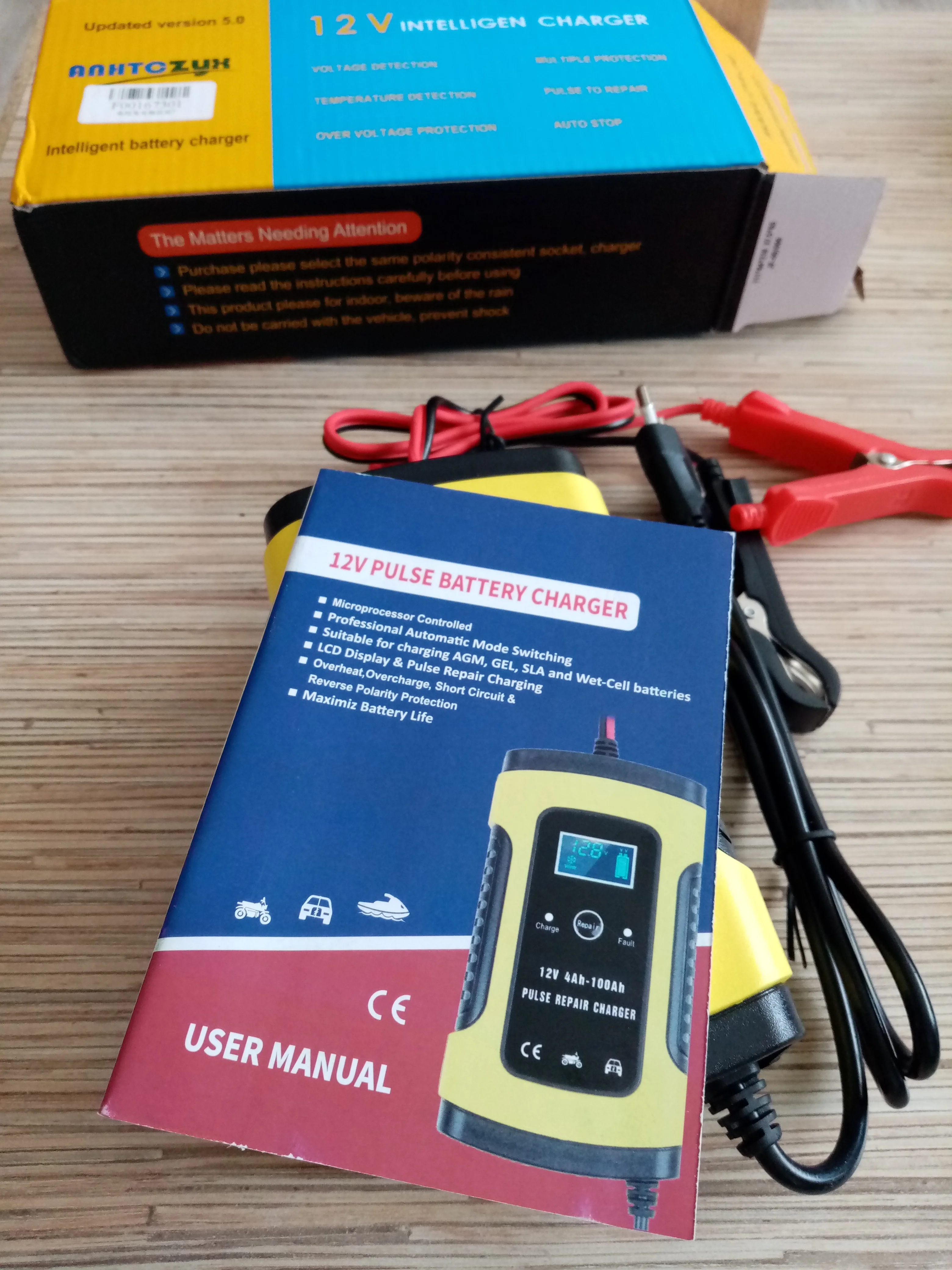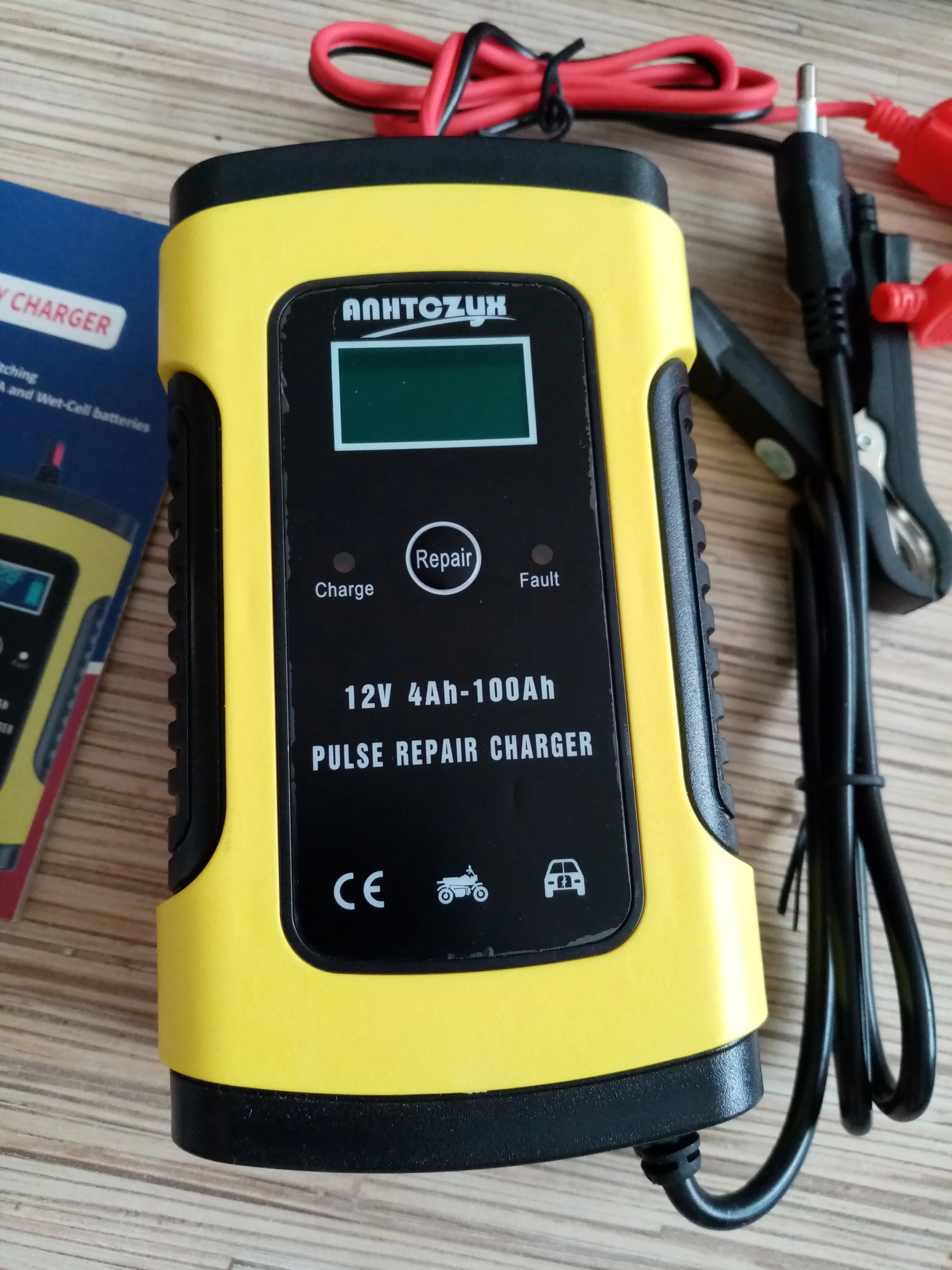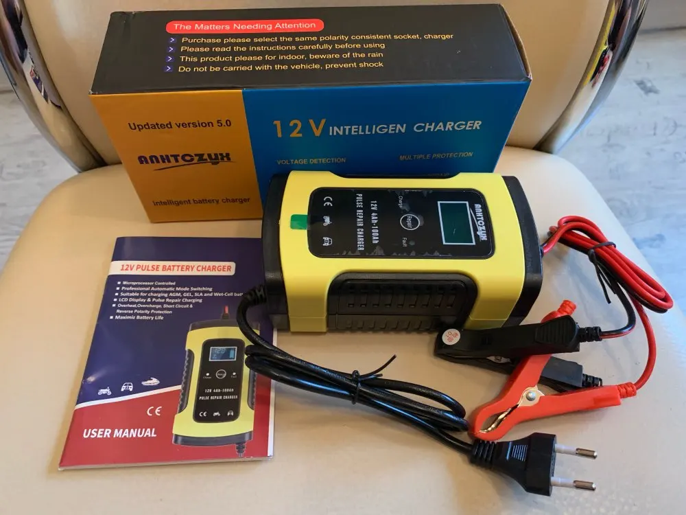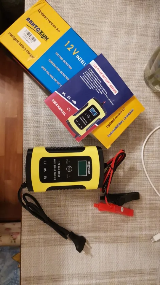 Зарядное устройство получил, ни каких внешних повреждений нет. Пробую проверить на дохлом гелевом аккумуляторе на котором напряжение 7 вольт, в режим зарядки не выходит, показывает полный заряд, пришлось запустить в режим ремонта батареи, может поднимет напряжение до минимальных значений. Тогда должен запуститься и на заряд. По размеру зарядное аккуратное, легкое. Что не понравилось, так это короткие оба провода. С продавцом не общался. Доставка в Волжский, Волгоград, три недели. Даже не верится. Да, инструкции на русском нет. Переводчик в помощь. По возможности отзыв добавлю.