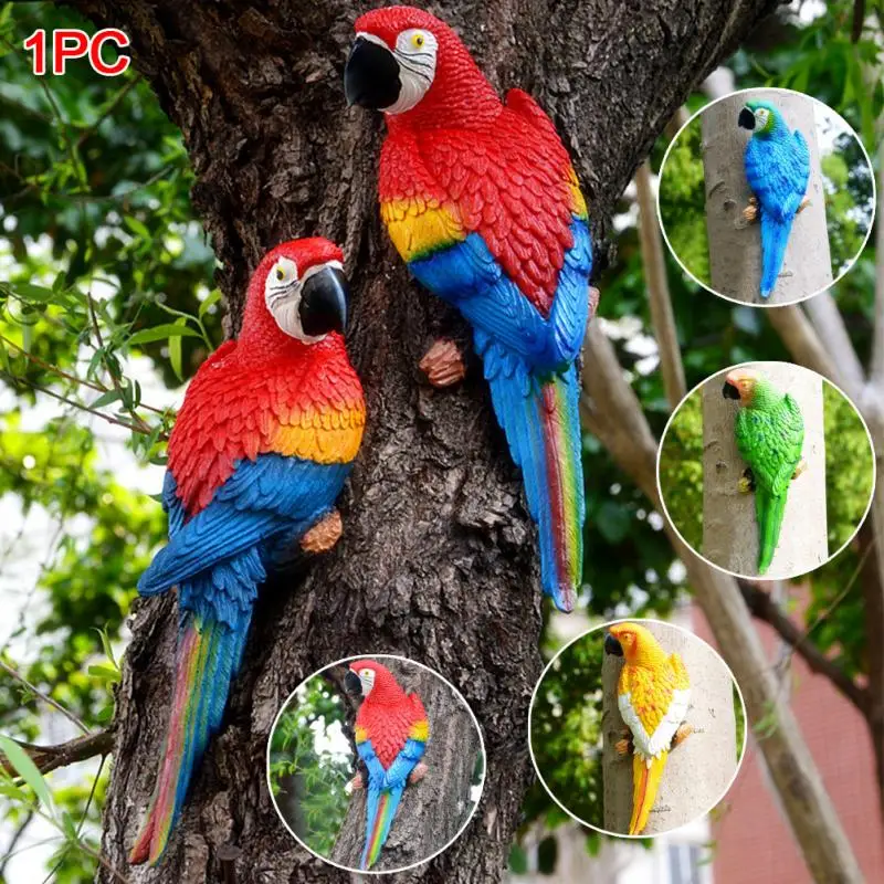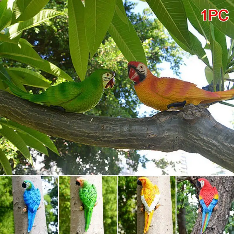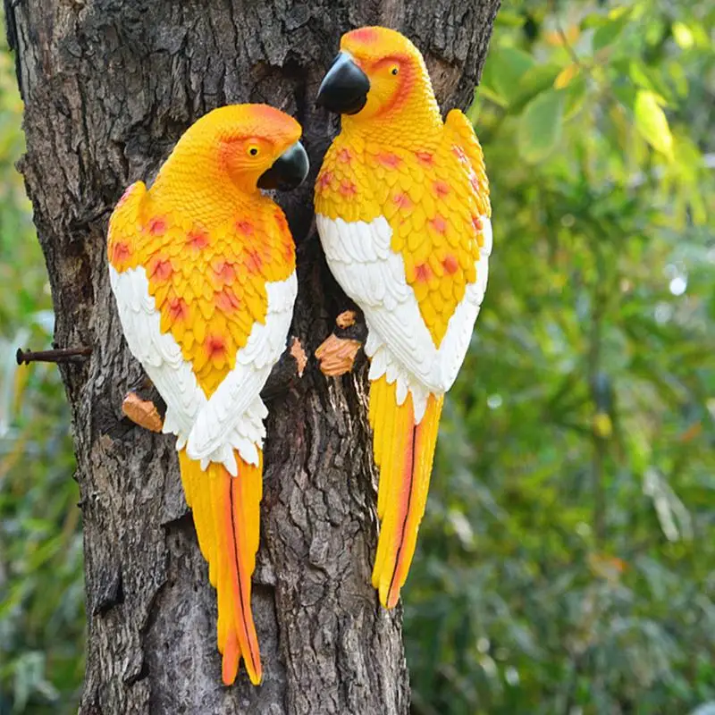 Прочная поддельная имитация попугая Статуэтка настольного орнамента из смолы для украшения внутреннего дворика с половиной стороны реалистичная скульптура