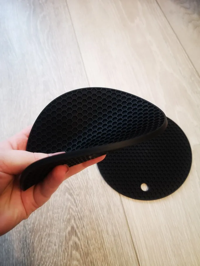 Заказ отправлен быстро ... Не знаю что писать судя по всему подставка + работает как сбор пролившегося первого или какой либо горячей жидкости - немного но внутри сот останется. Сама подставка гибкая материал похож на силикон (если честно как-то не озадачивался/не смотрел из чего сделанно). Как по мне - всё норм. Есть небольшой запах - должен выветрится. Все оценки по 5 звёзд, хотя с продавцом не общался - не зачем. В общем испытания покажут.