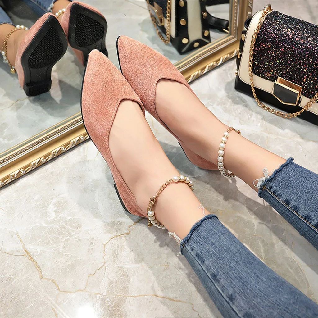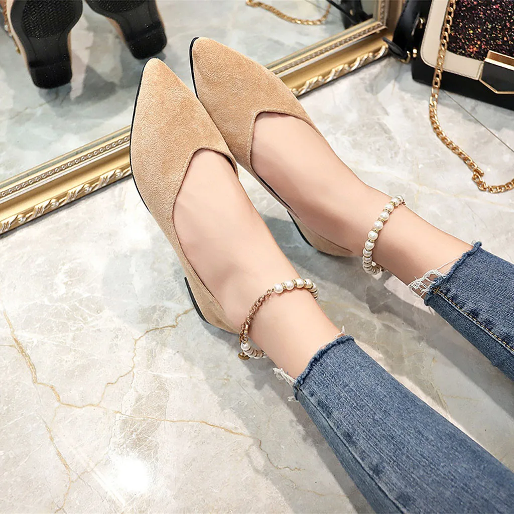 Женская обувьМодаПрочные ботинки для активного отдыха с острым носкомТонкие Туфли с пряжкой и жемчугом