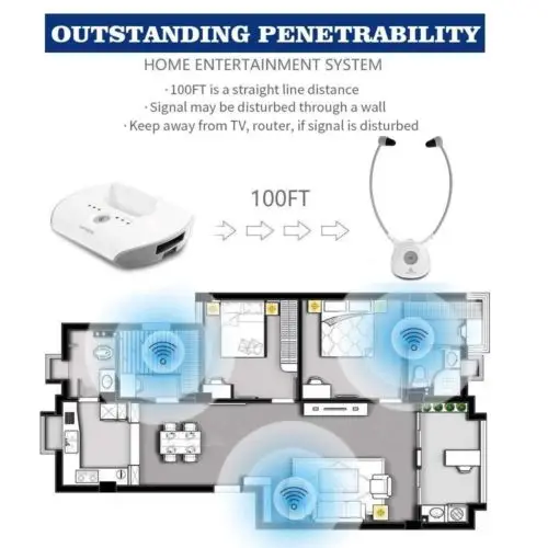 Artiste APH100 1 передатчик 2 Наушники APH102 для пожилых людей ТВ ...