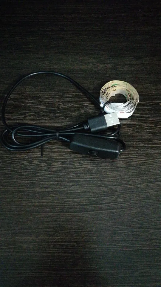 Светодиодная лента очень тонкая. Вы можете отрезать его примерно каждые 10 см. Удобное крепление USB, чтобы иметь возможность использовать ленту с блоком питания или обычным зарядным устройством usb. На данный момент работает. Хороший свет.