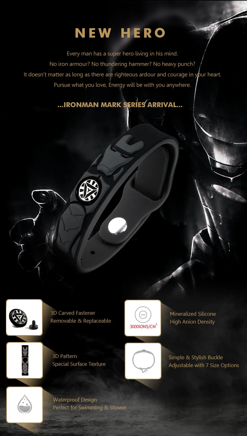 Спортивный браслет Power Ionics NEW HERO IRONMAN 3000ionscc 4 в 1 турмалин и Титан Германий F.I.R