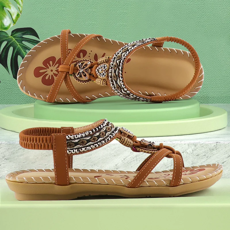 Женские босоножки на платформе, большие размеры, неглубокие, Нескользящие, модная летняя обувь, женские пляжные сандалии с мягкими бусинами