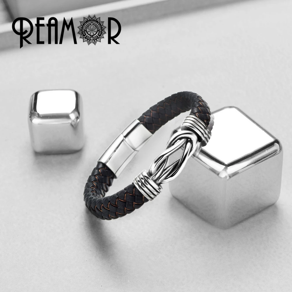 Мужской браслет из натуральной кожи REAMOR, неправильный браслет из...