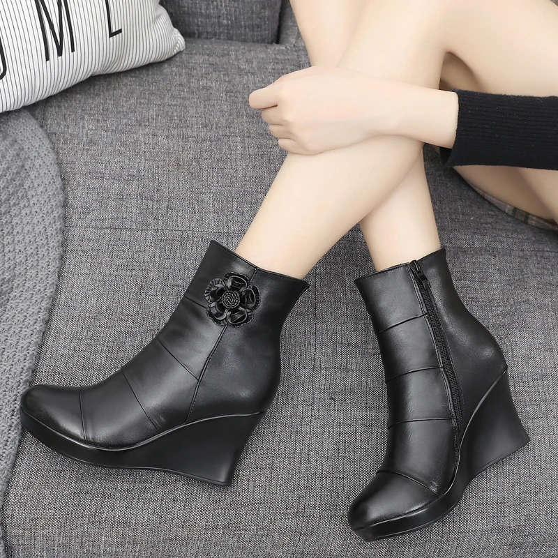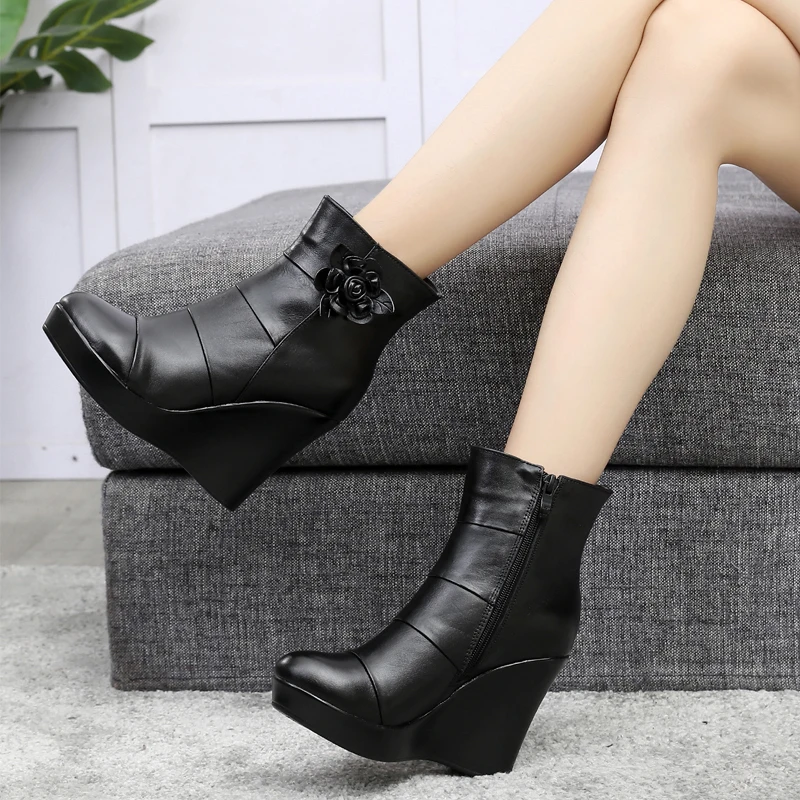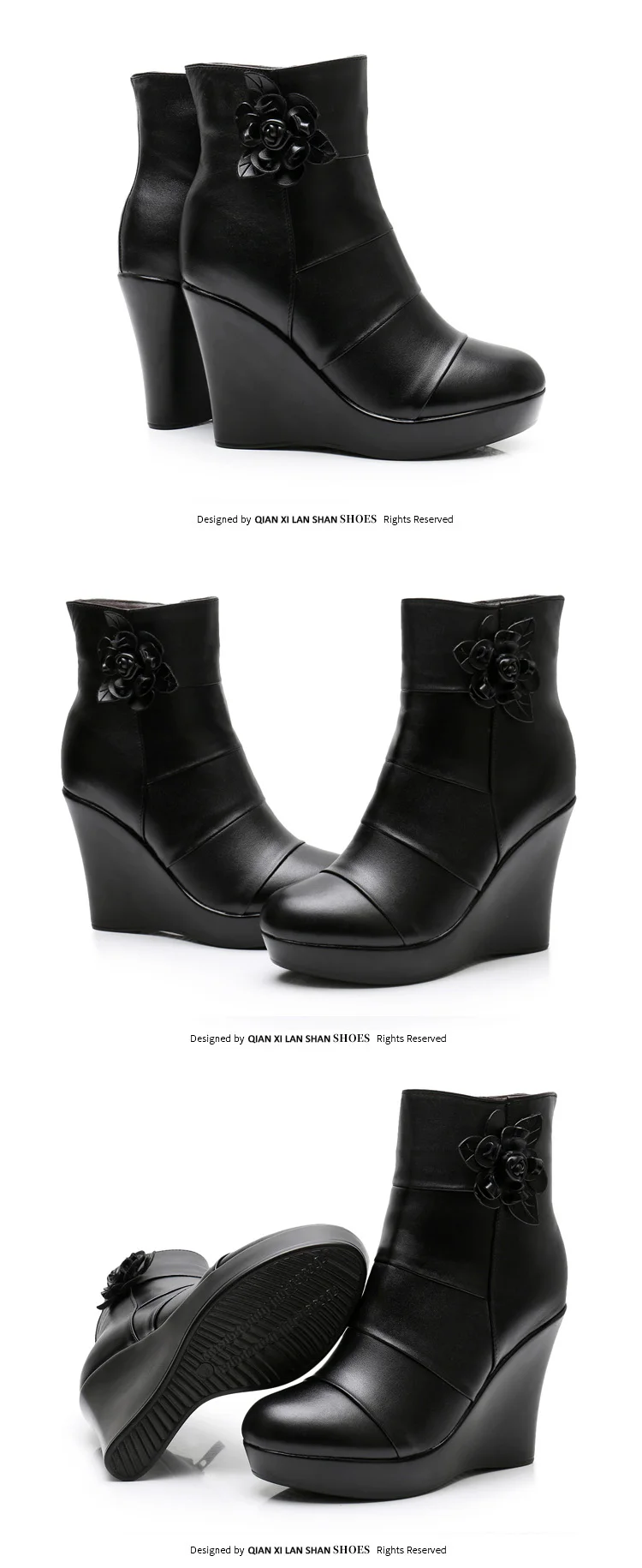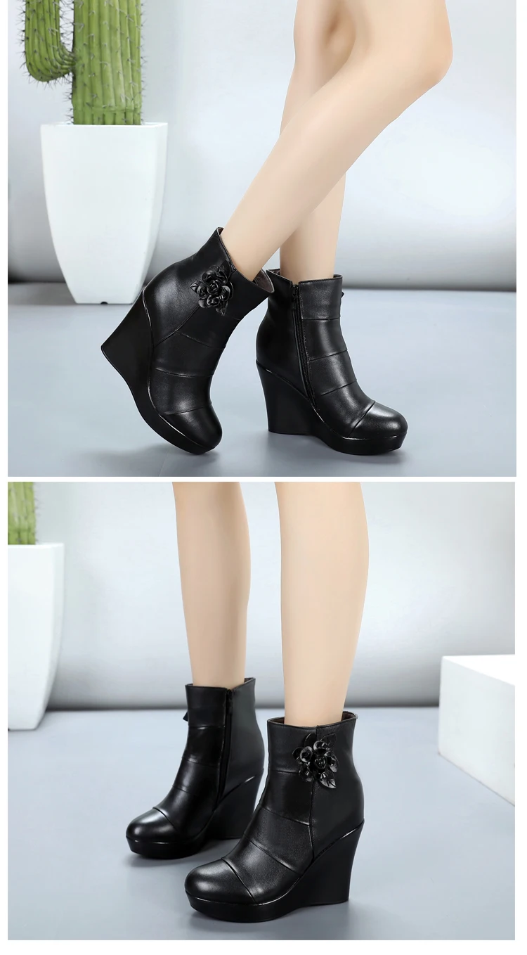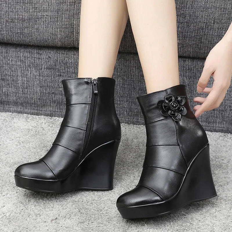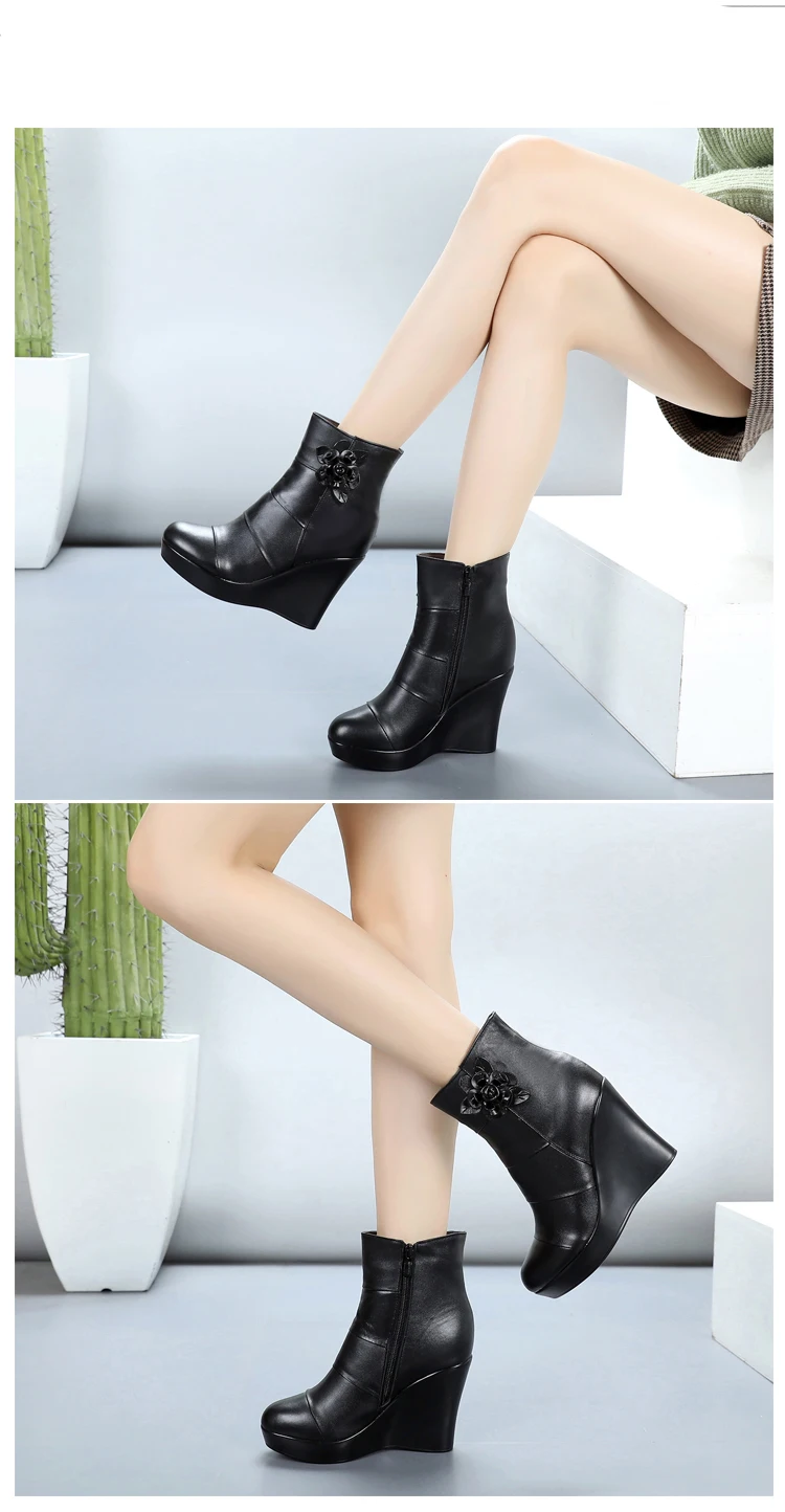 GKTINOO2022; Ботинки из натуральной кожи; Сезон осень-зима; Женские ботильоны; Женские ботинки на танкетке; Женские ботинки; Обувь на платформе