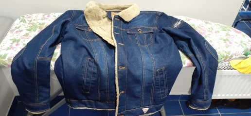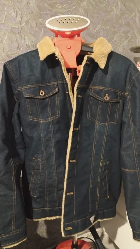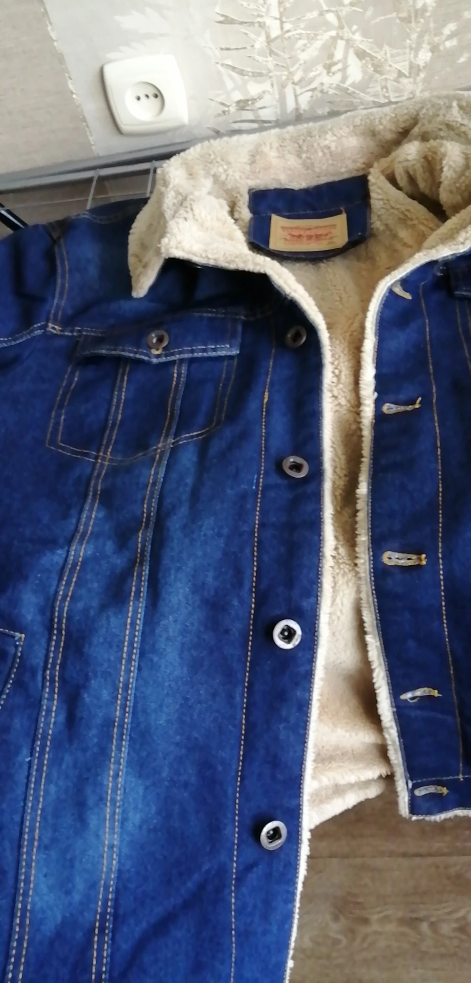 Куртка сшита очень аккуратно, ни каких торчащих ниток, джинса средней плотности, карманы прошиты нитками, нужно отпороть, а то муж сначала запаниковал, думал нижние карманы-обманка. Размер совпадает, главное правильно обмерить и написать продавцу: рост, вес, ОГ, Плечо, длина рукава. У нас всё подошло идеально. Имейте ввиду, куртка короткая, при росте 175 до середины бедра не доходит.