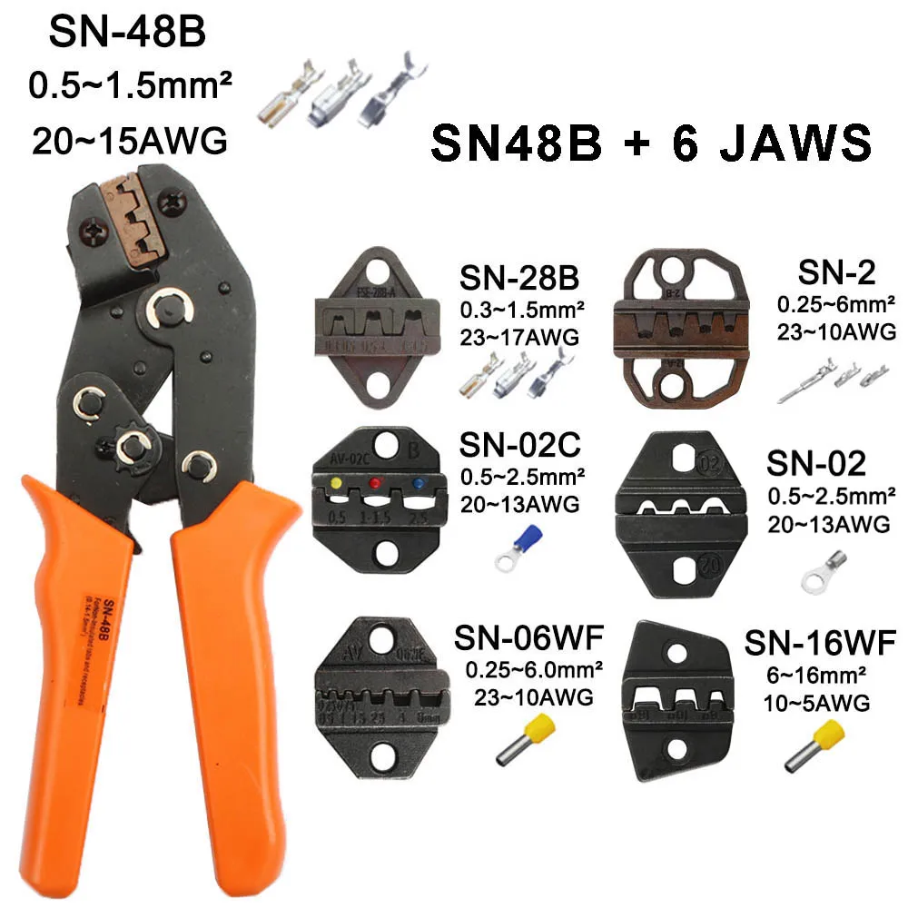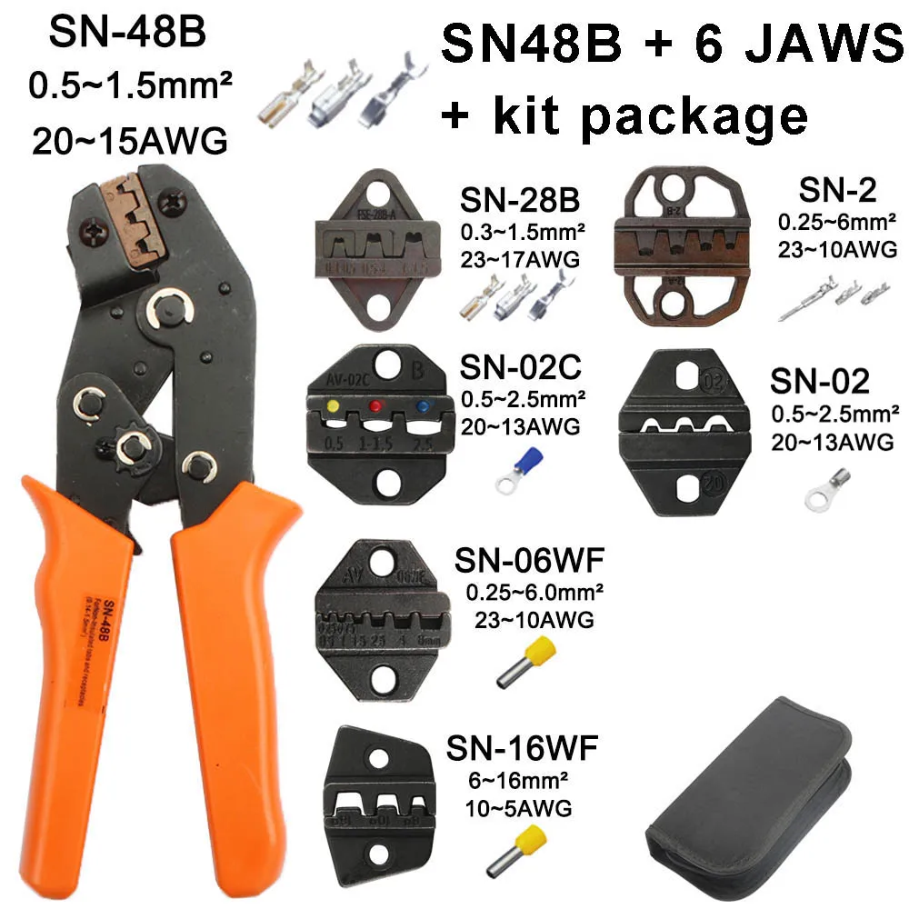 Обжимные плоскогубцы SN-48B, 7, для 2,8, 4,8, C3, XH2.54, 3,96, 2510, штекертрубкаИзолированные клеммы, сумка, Электрический зажим, фирменные инструменты
