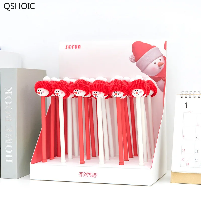 24 шт кавайные Канцтовары мультяшный Снеговик гелевые черные чернила для ручек подарочные гелевые ручки для письма офисные школьные принадлежности