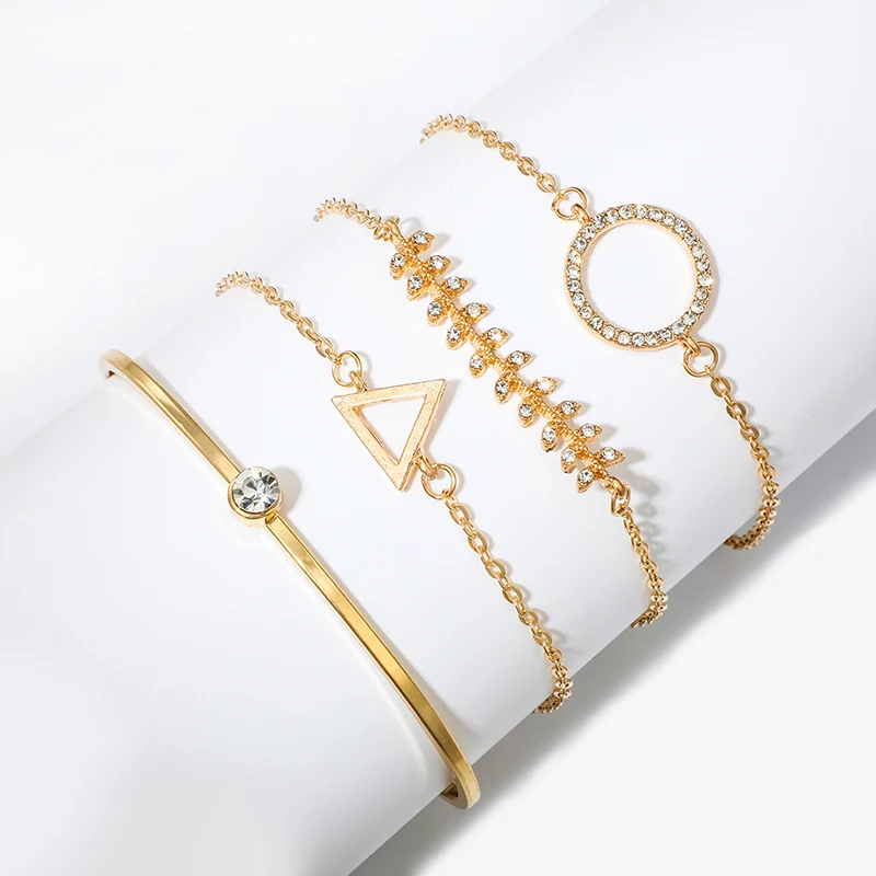 Docona набор золотистого цвета, треугольный круглый жесткий браслет с кристаллами для женщин, подвески в виде цепей в форме листа, 4 шт.1 комплект, 6891