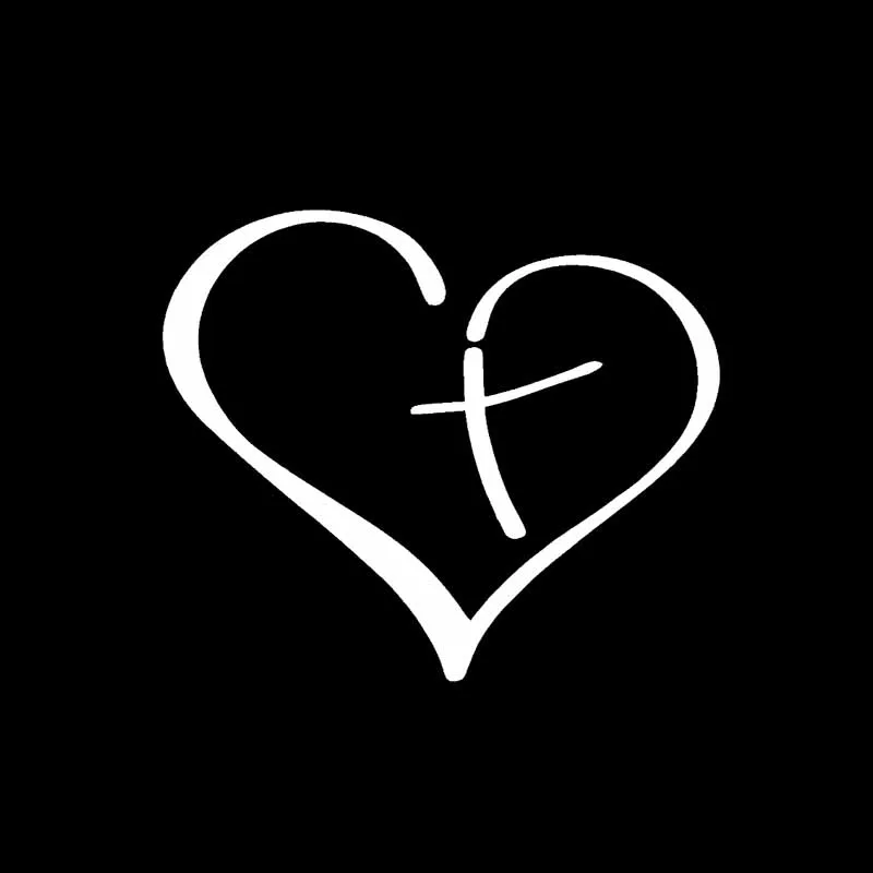 YJZT, 13,1 см * 11 см, Виниловая наклейка в виде сердца с крестом по центру, Виниловая наклейка в христианском черномсеребряном цвете