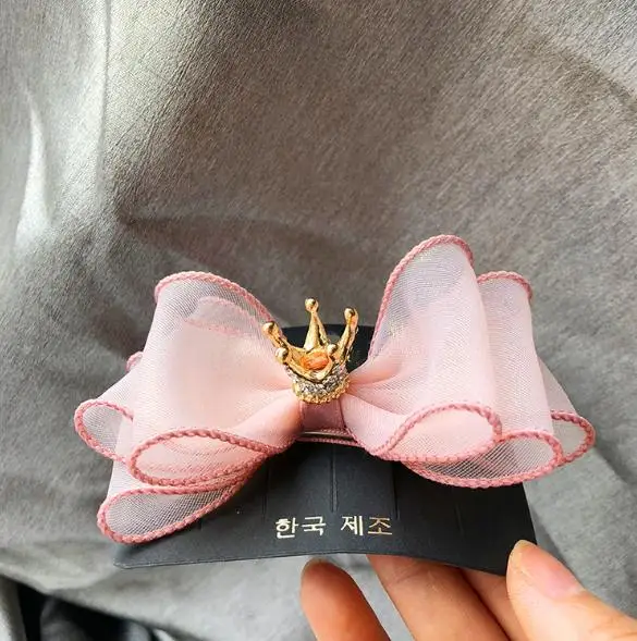 Новинка, трехмерный бант для волос из органзы, аксессуары для волос, заколки принцессы, корона с цветами для девочки, украшения для волос, заколка для волос J45