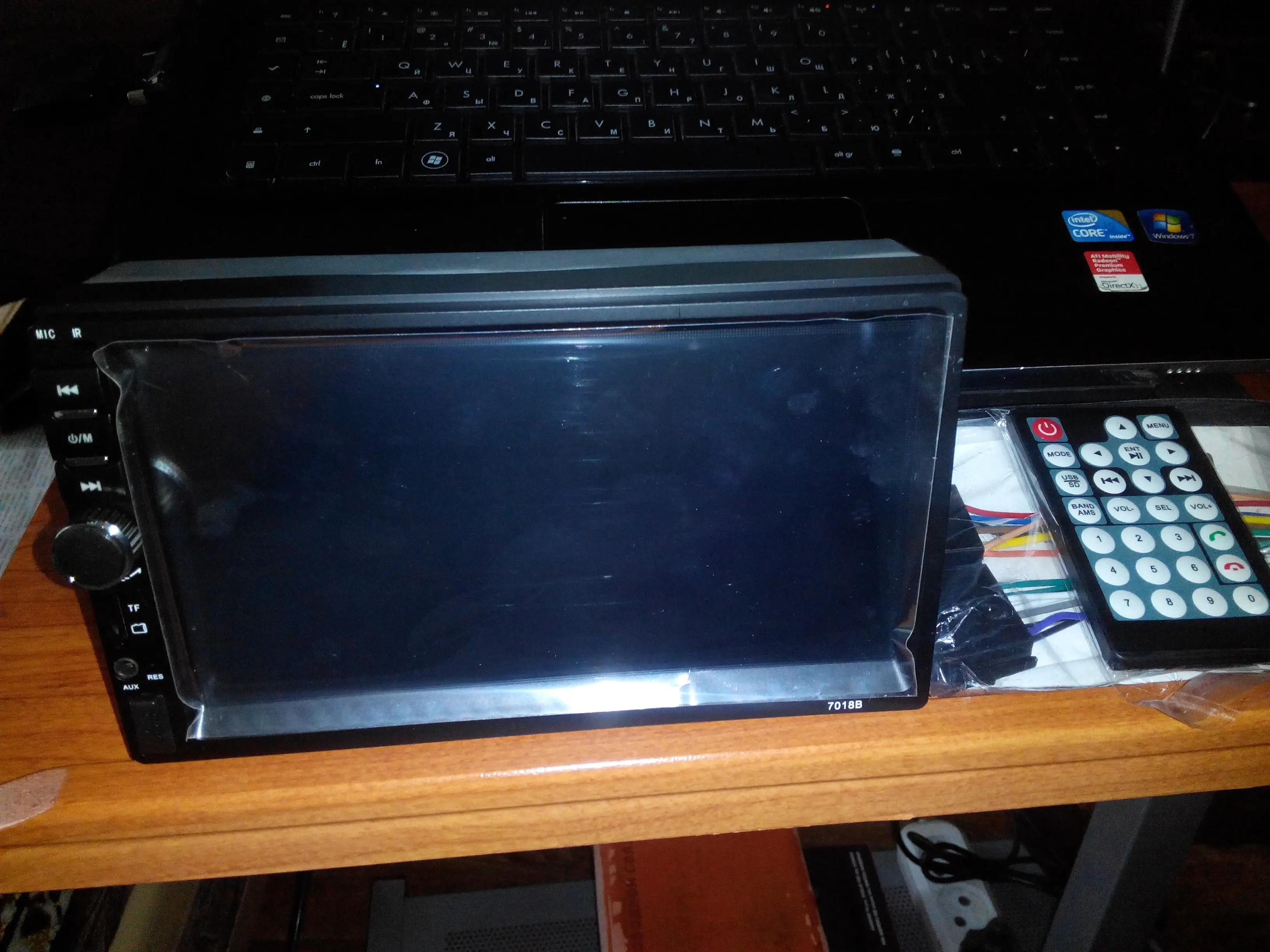 Пару дней ждал отправки, отслеживания не было, через неделю неожиданная смска с почты - посылка от Российского отправителя. Такой скоростной сюрприз. Подключил пока дома на блок питания для светодиодки и акустику от мц. Качает на славу. Настроек много, экран с достаточно широким углом обзора, что удивительно, регулировка яркости,контраста, насыщенности и цветового тона. Пятиканального эквалайзера, как в мануале, не нашел, только бас и требол с 4мя предустановками. Но для этого класса за глаза. Зато балланс по объему авто прикольный графический. Тач действительно тормознутый, на палец, по площади, реагирует неохотно. На более менее твердую указку гораздо отзывчивее. Сама оболочка без тормозов, радио в городе - все известные каналы на 10 сантиметровую отвертку. Карту читает, фото- кино- музыка без проблем, минус в том, что для фото включает автоматом слайдшоу без права предосмотра. Но что еще хотеть от флеш-проги на пару килобайт? В целом за свою цену круть крутецкая.