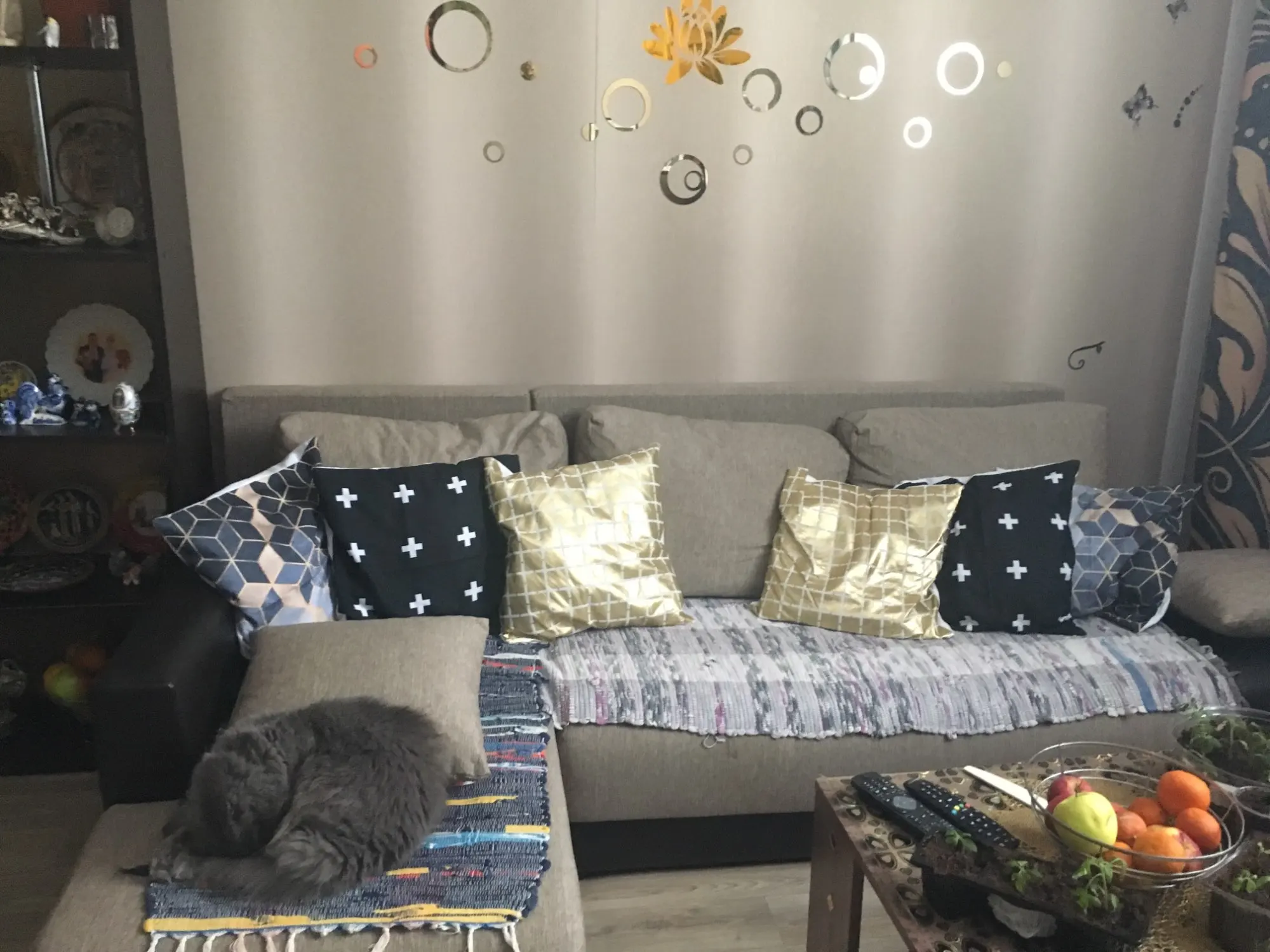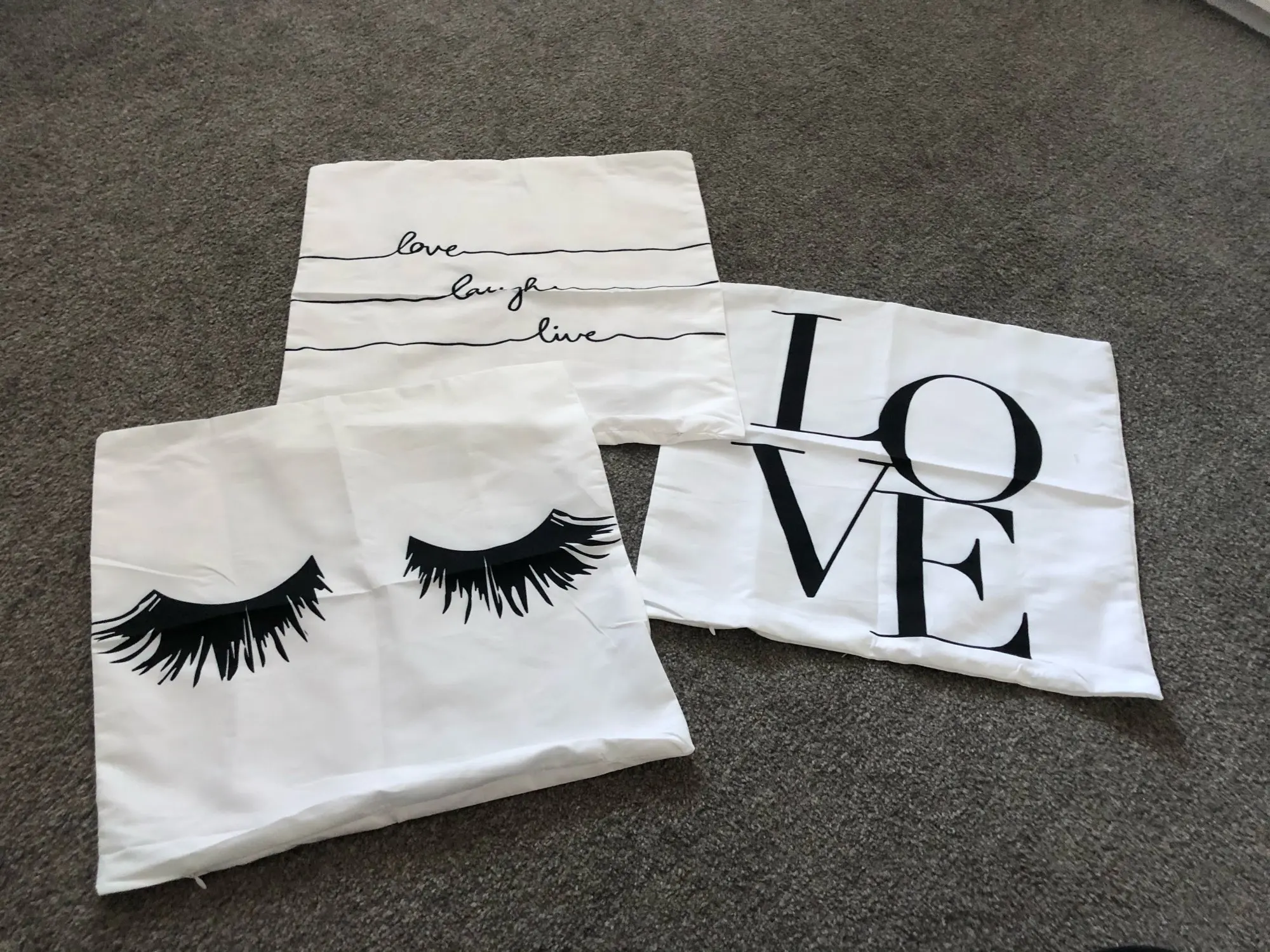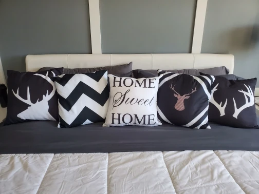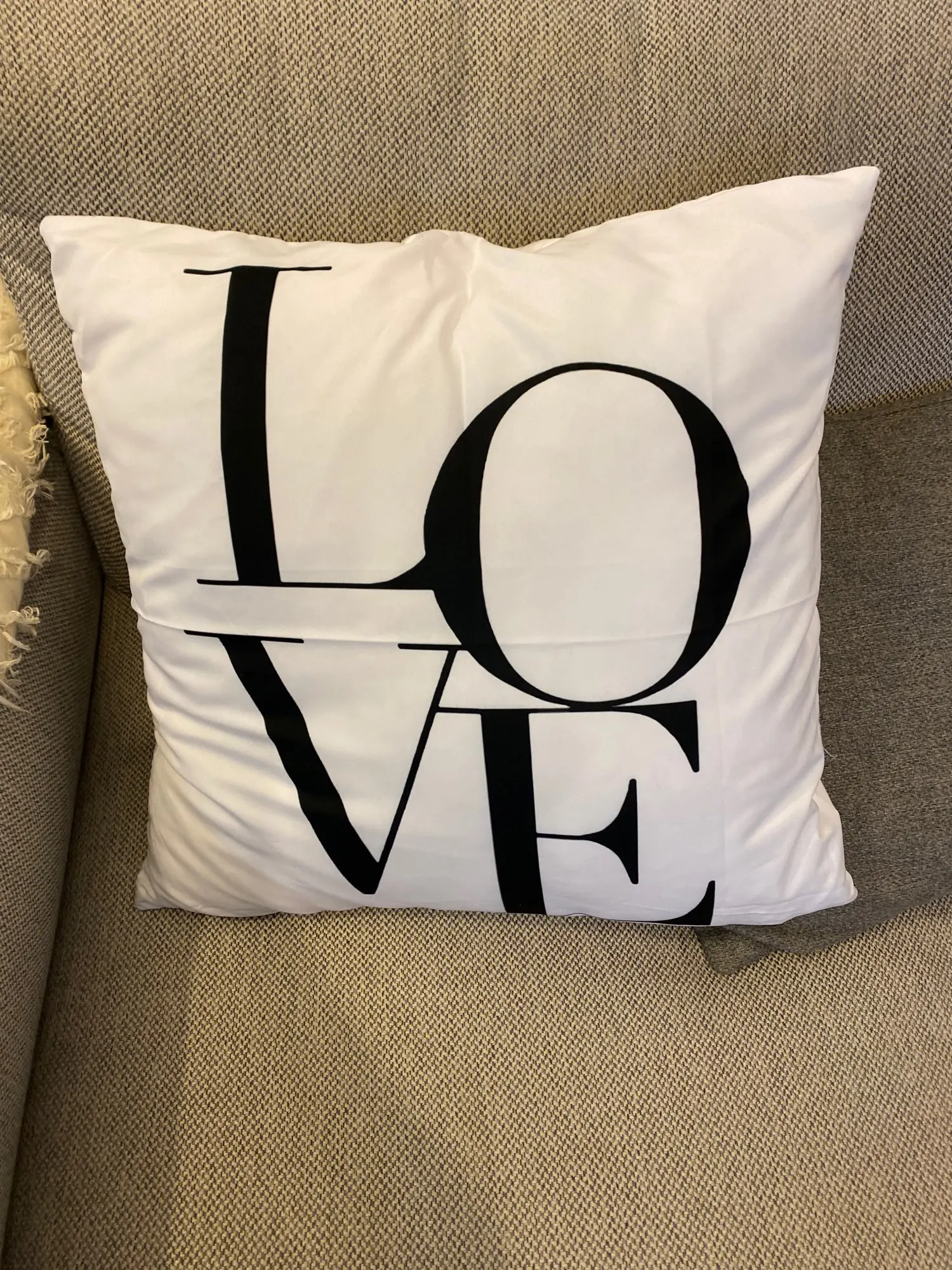 Доволен этой покупкой. Мне было трудно найти крышку для моего подушки 40 х40, та, которая составляет 43 х43, немного больше, но она проходит (см. Фото). Доставка заняла 20 дней для Франции. Ткань полиэстер, поэтому довольно блестящая, надписи соответствуют описанию.
