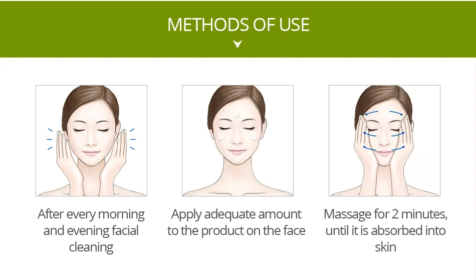 1. После очистки лица утром и вечером2. Нанесите необходимое количество средства на лицо3. Массируйте в течение 2 минут до полного впитывания в кожу