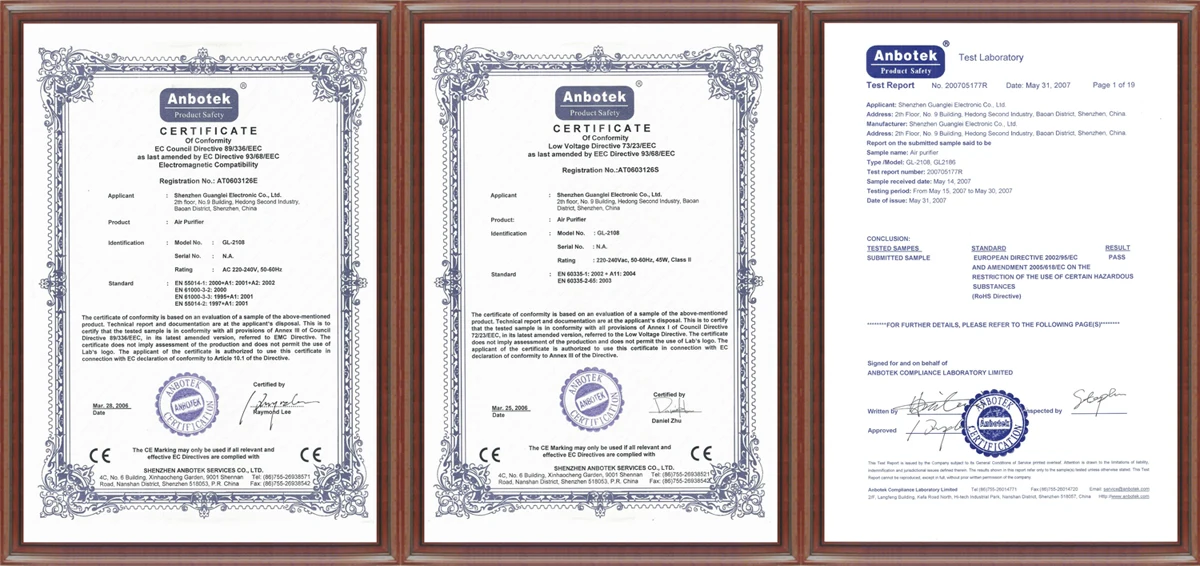 HEPA очиститель воздуха с отрицательными ионами и функцией очистки озона. Модель: GL-2108, CE, RoHS сертифицировано