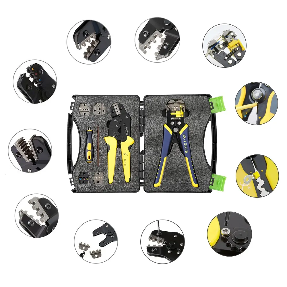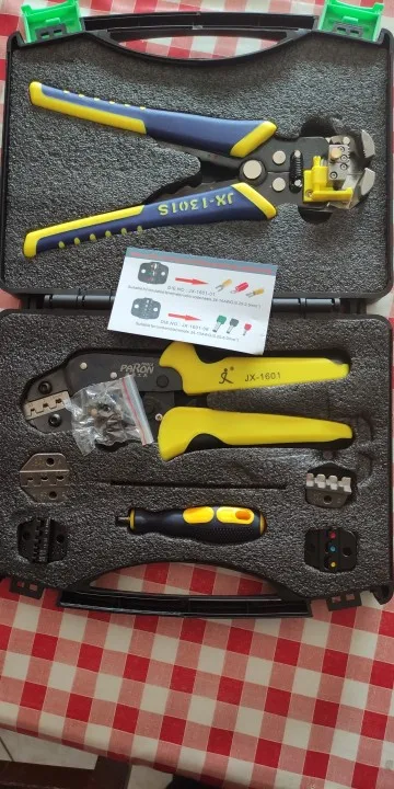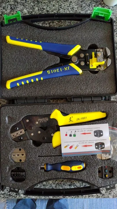 Посылка:1 * JX-1601 щипцы для проволоки1 * JX-1301S автозачистки проводов1 * S2 отвертка4 * Запасные штампы4 * винты1 * ящик для инструментов