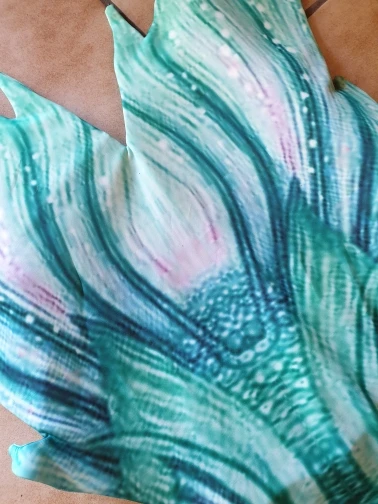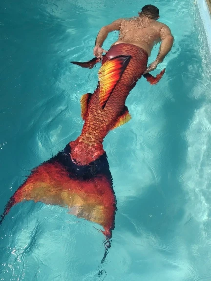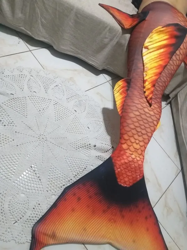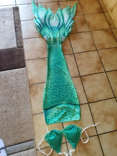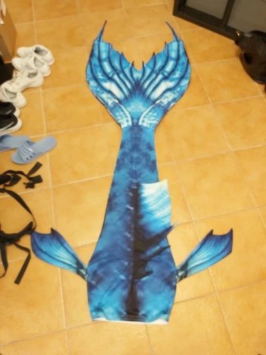 Хорошая посадка, а хвост имеет очень красивую форму и размер. Тем не менее, так называемый монофин больше кусок пластика с 2 ластами. Принт на костюме также немного размыт. К сожалению, весы плохо видны.