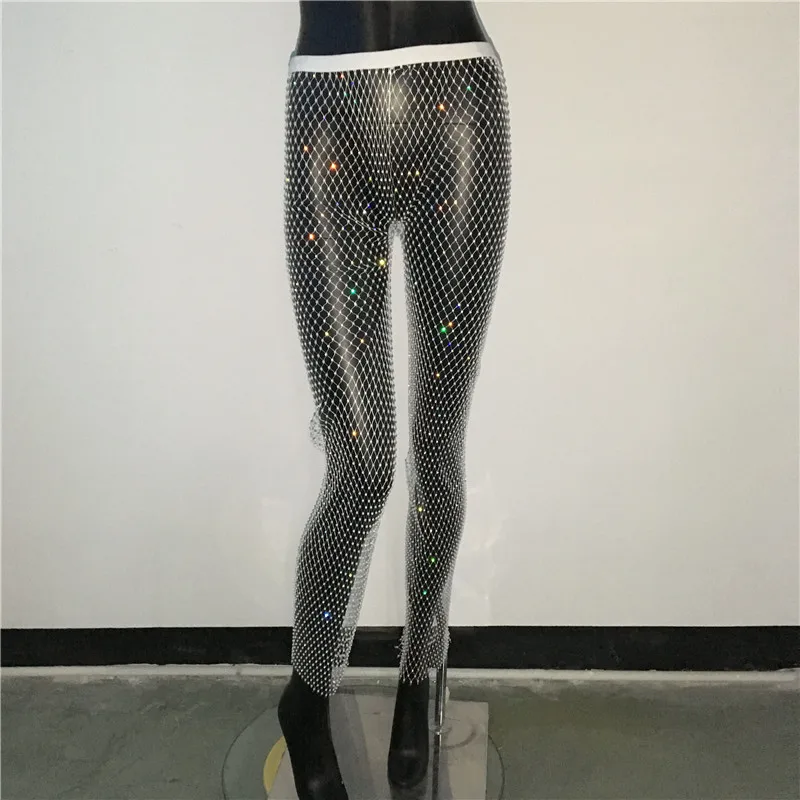 Женские прозрачные сетчатые брюки с кристаллами Стразы Сексуальная Туника длинные брюки сетчатые прозрачные Клубные вечерние пляжные брюки
