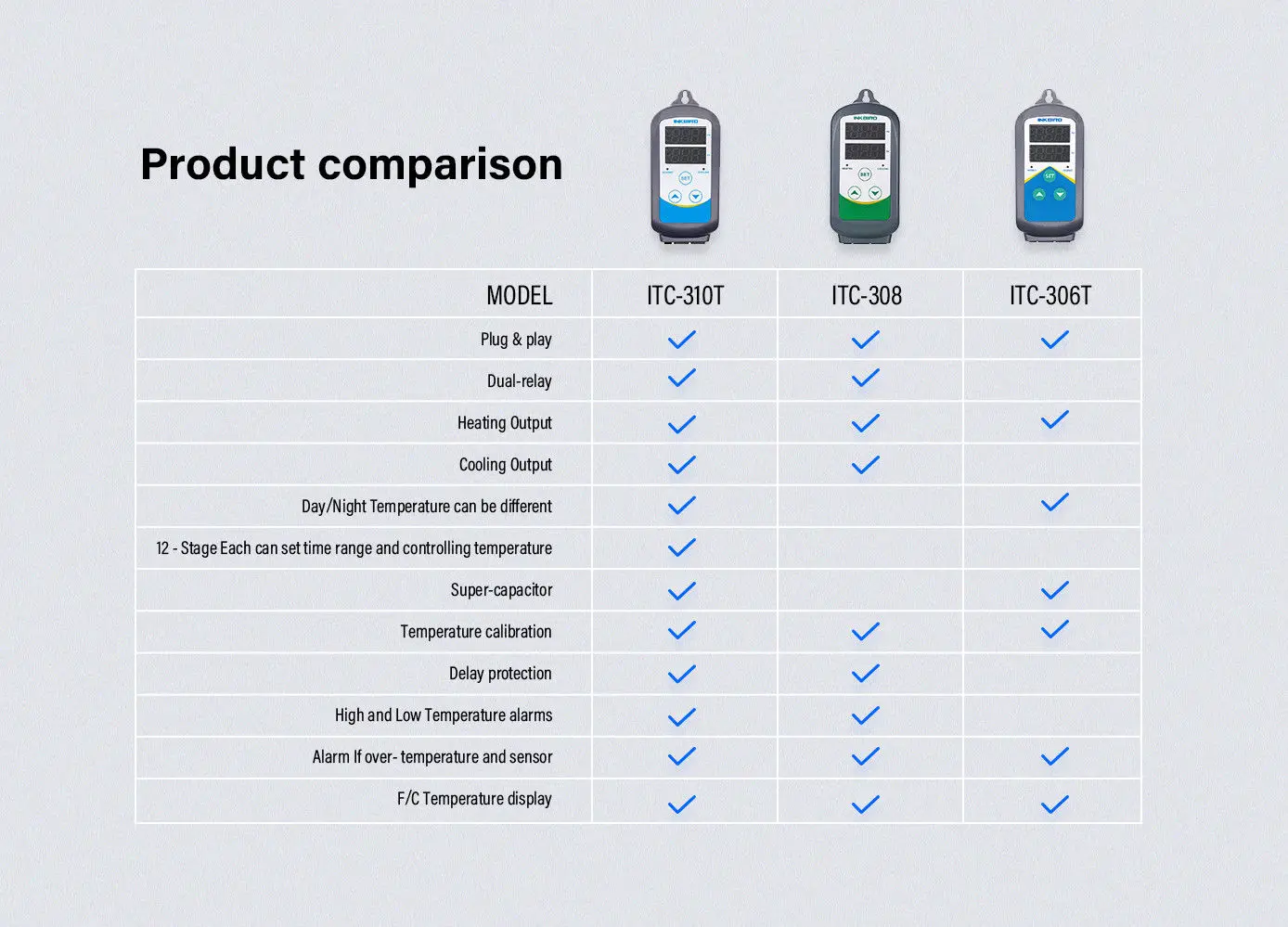 Контроллер температуры Inkbird: ITC-308 регулятор температуры нагрева/ITC-310T-B 12-Period таймер этап цифровой нагрев и охлаждение Предварительно проводной регулятор температуры/ITC-306T термостат нагрев только 2 различных температурных s функции двойного цикла в течение 24 часовBreif введение для 3 типов термостата:ITC-308 (нагревание и охлаждение):
