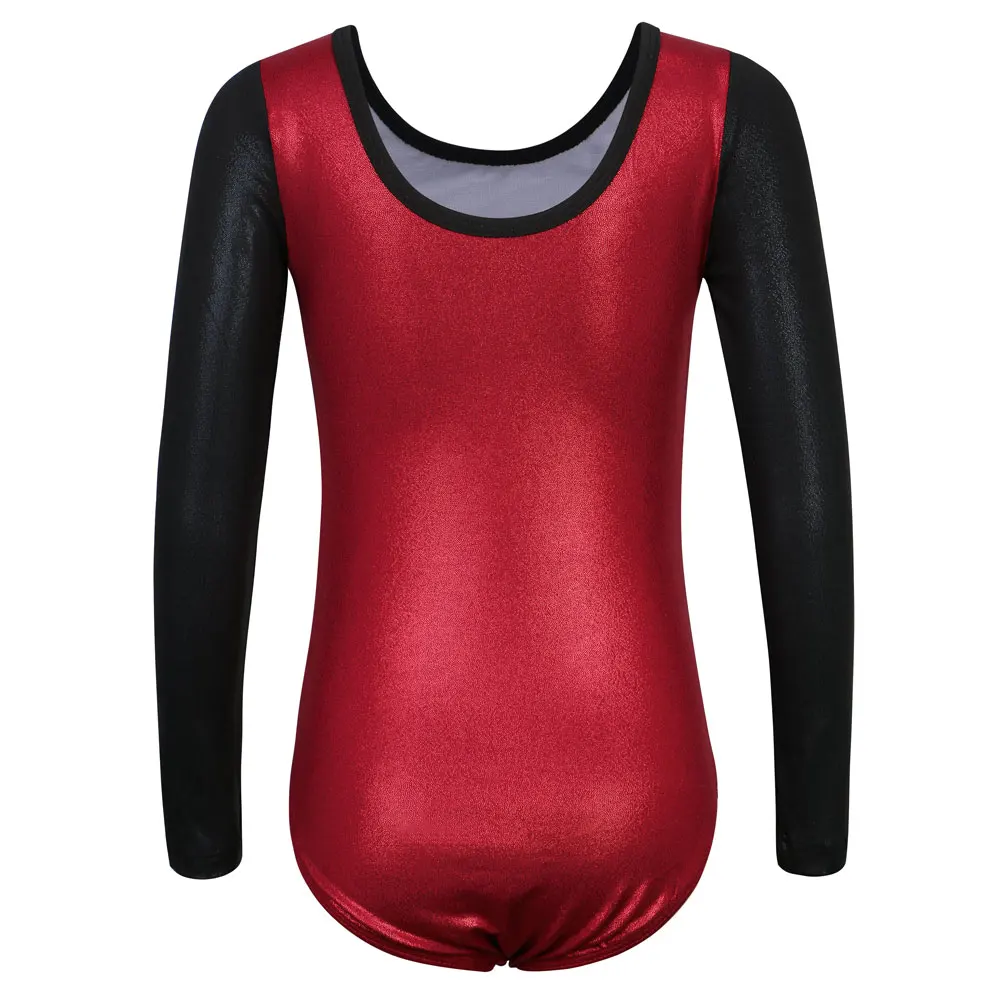 BAOHULU/гимнастический трико с длинными рукавами для девочек, черный, ярко-розовый, пестрый спортивный костюм для малышей, Детская Одежда для танцев