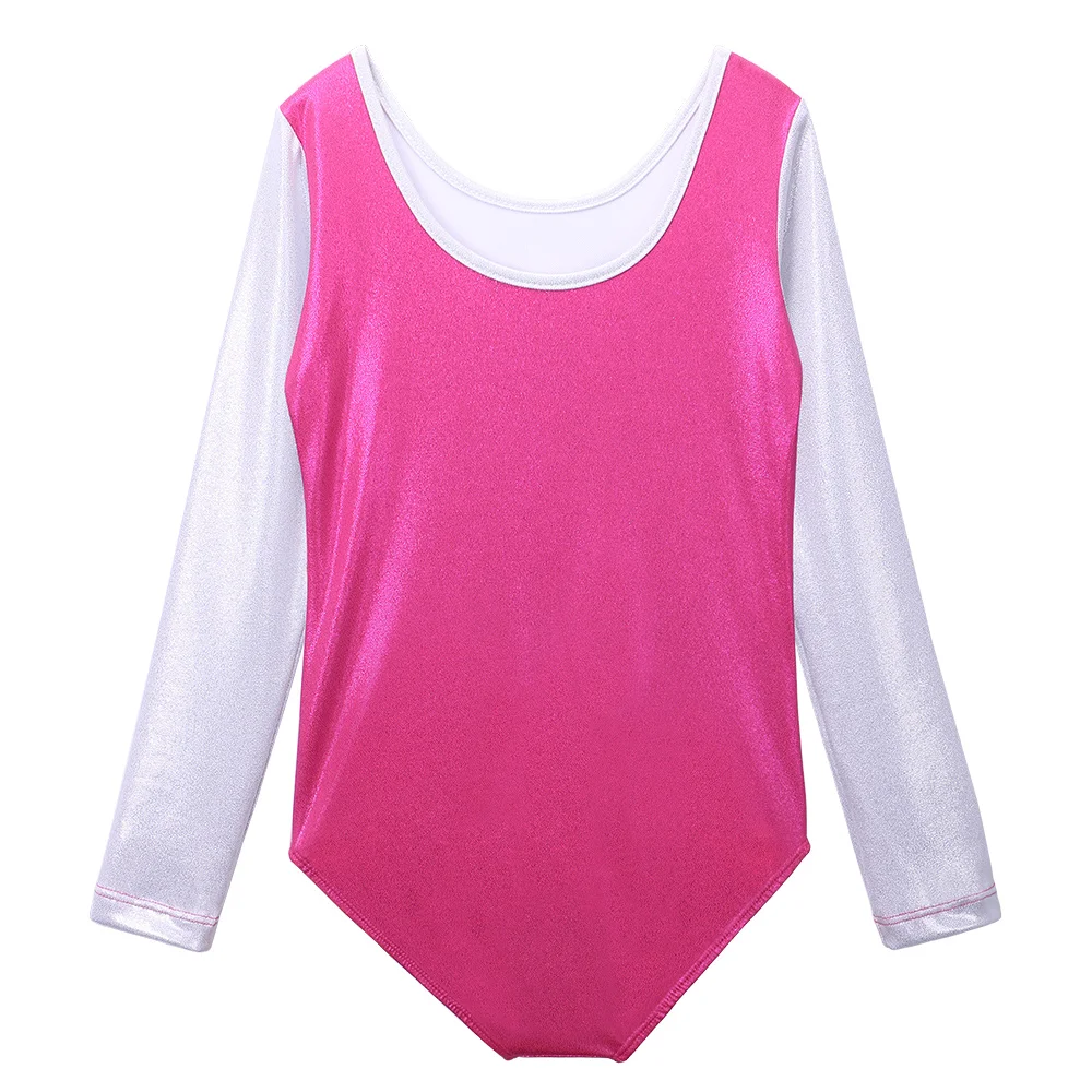 Гимнастический купальник BAOHULU с длинным рукавом для девочек, Молодежный черный ярко-розовый лоскутный купальник для малышей, спортивный костюм, детская Одежда для танцев