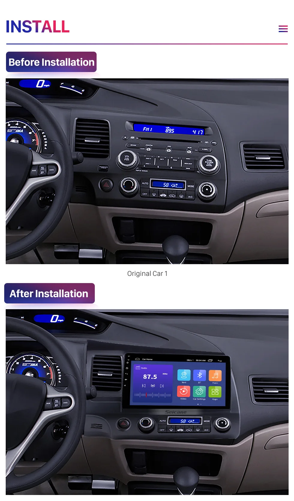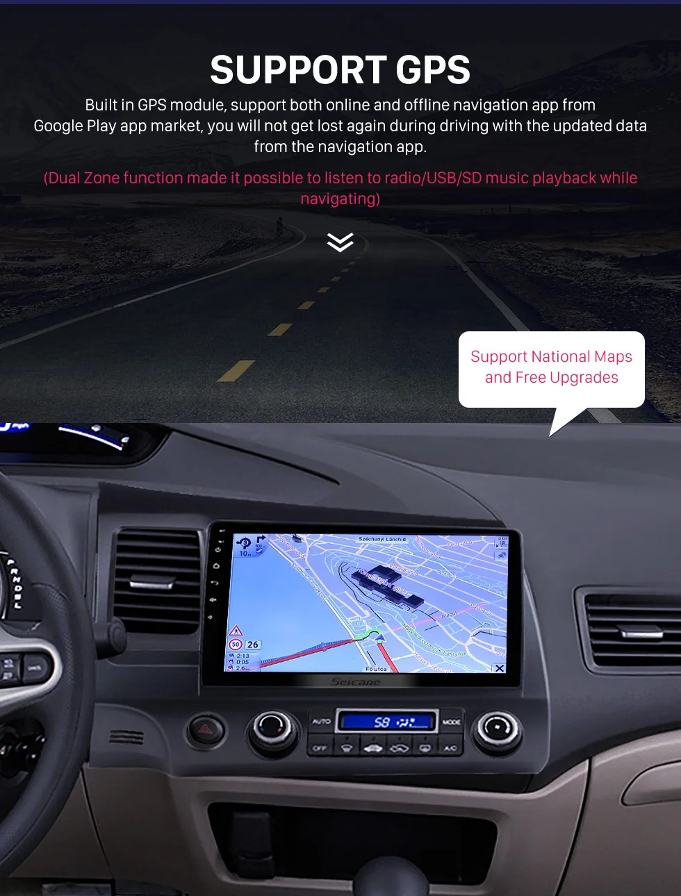 Seicane 2Din Android 9,0 10,1 дюймов автомобильное радио аудио GPS сенсорный мультимедийный плеер Wifi головное устройствоДля 2006 2007 2008 2009 2010 2011 Honda Civic