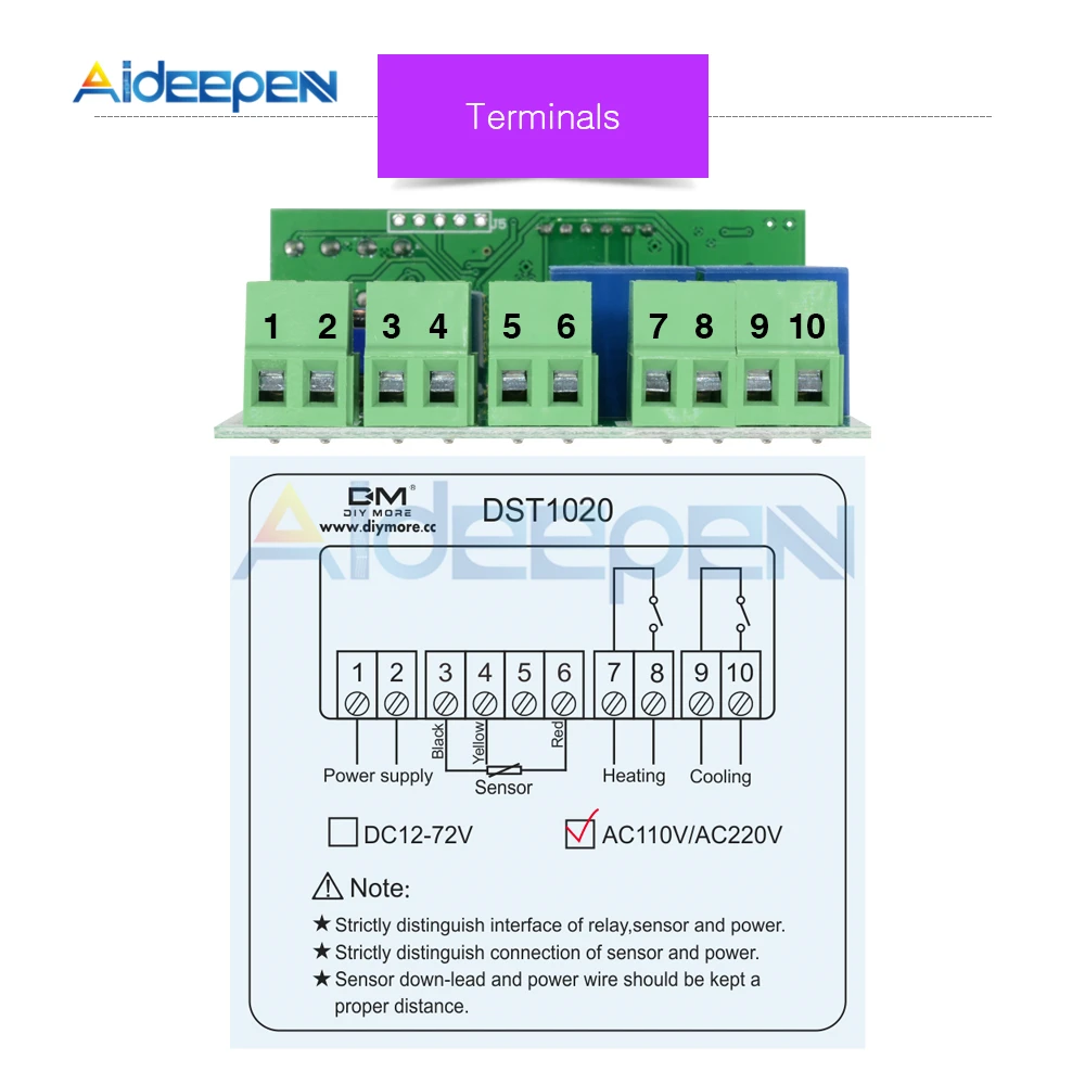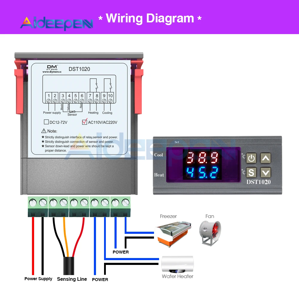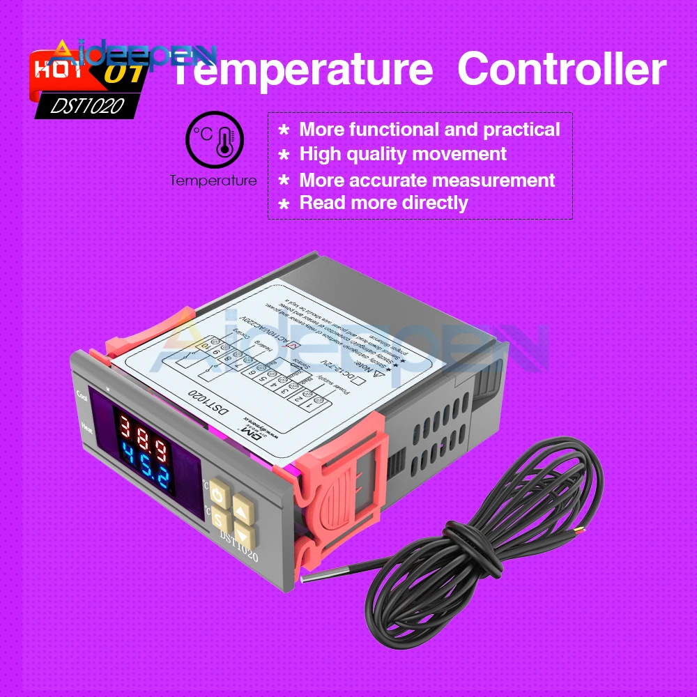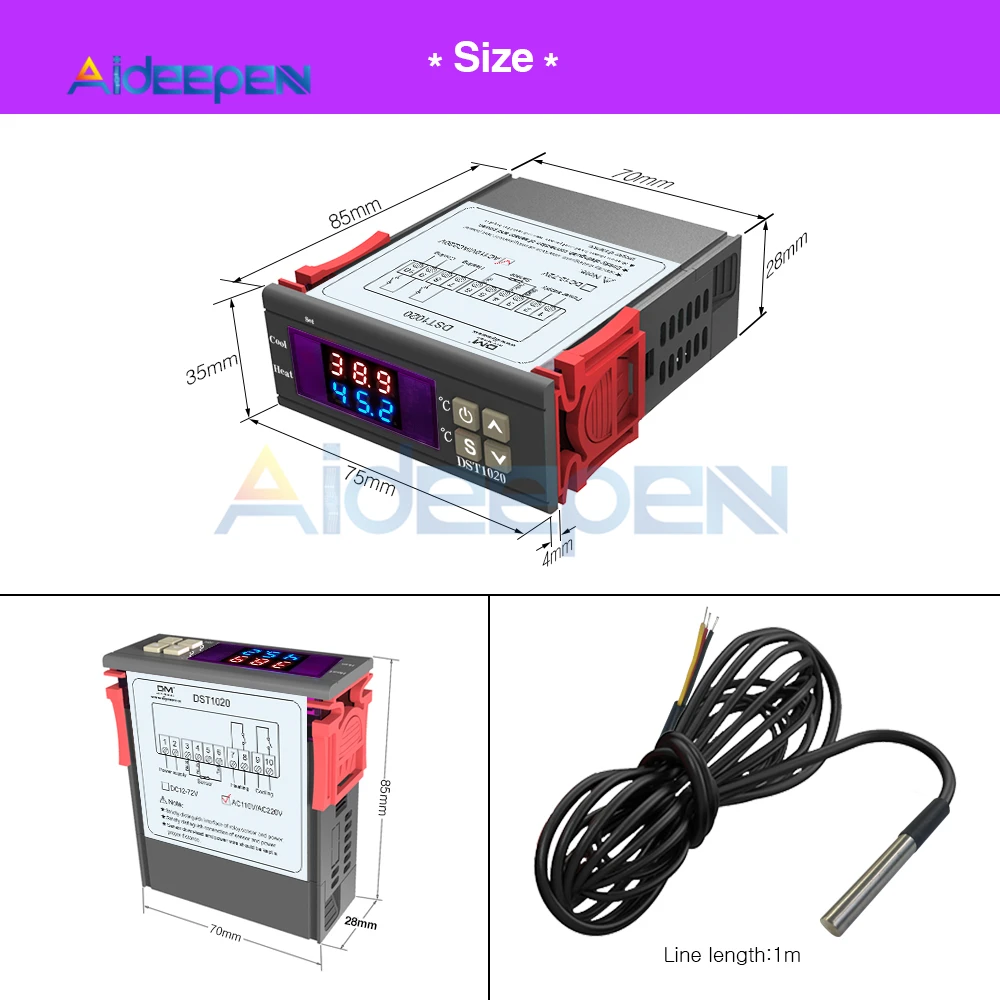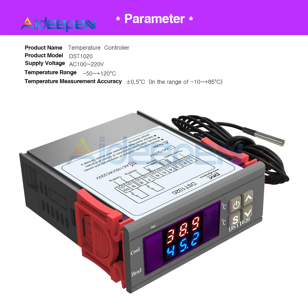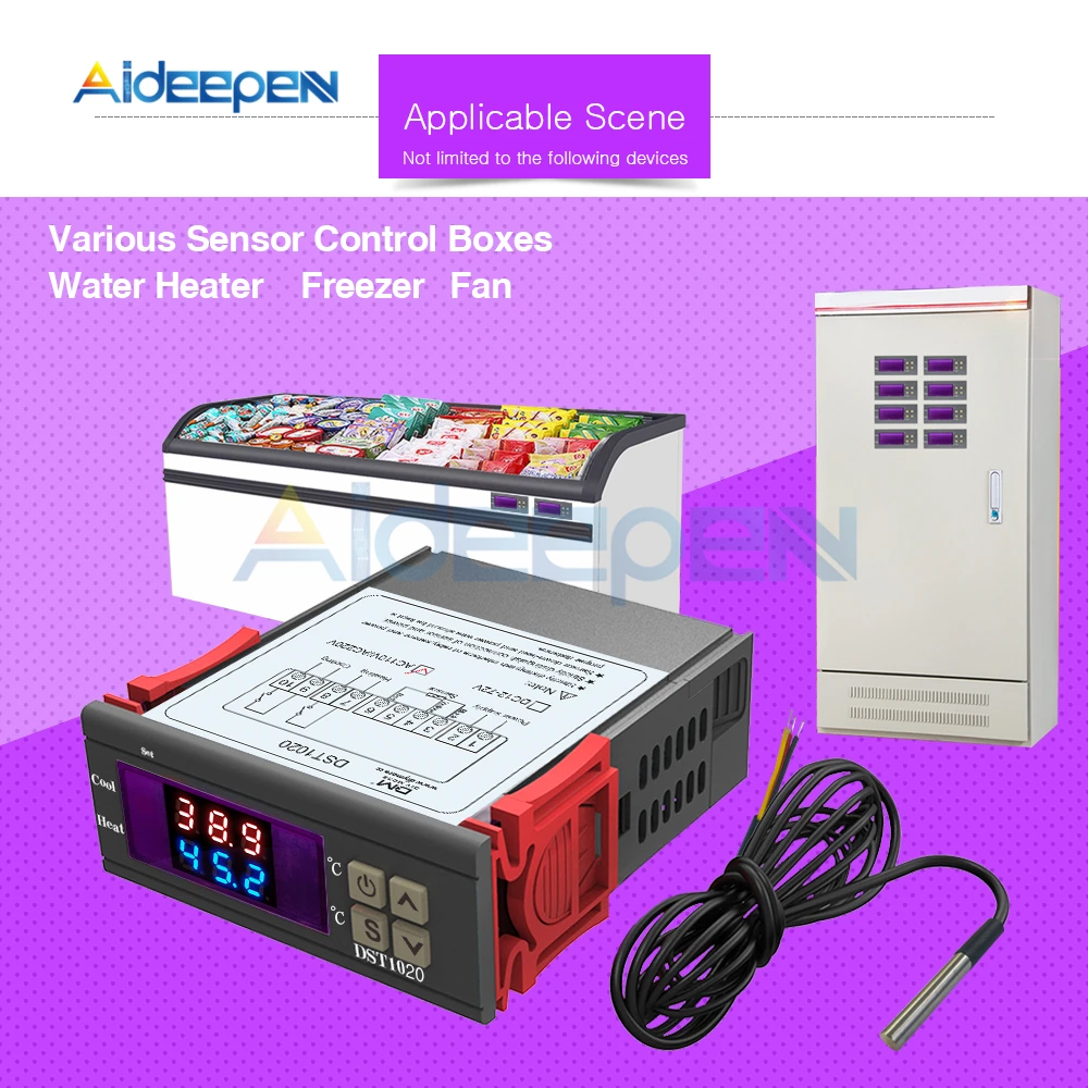 1 x DST1020 AC110-220V двойной дисплей цифровой регулятор температуры контроллер термостат DS18B20 Водонепроницаемый датчик