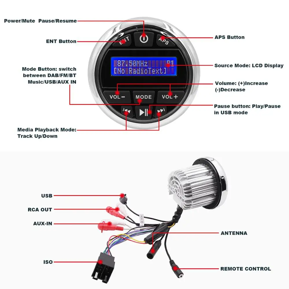 Морской стереоприемник Bluetooth DAB + AM FM-радио, аудиоприемник в стиле лодки с датчиком, USB MP3-плеер + 6,5 дюйма, 4 Ом, водонепроницаемые Динамики + антенна