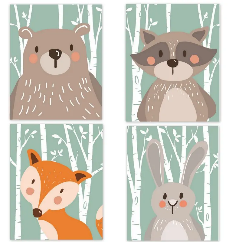 Минималистичная картина в скандинавском стиле с изображением Милого Животного для детей, медведь, лиса, кролик, настенные картины для гостиной, аниме плакат с мультяшным изображением