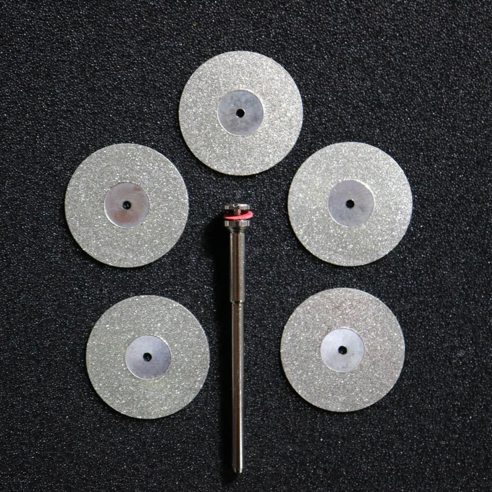 Стоматологические алмазные диски 5 шт., двухсторонние режущие дисковый инструмент диаметром 22 мм, толщиной 0,25 мм с 1 оправкой