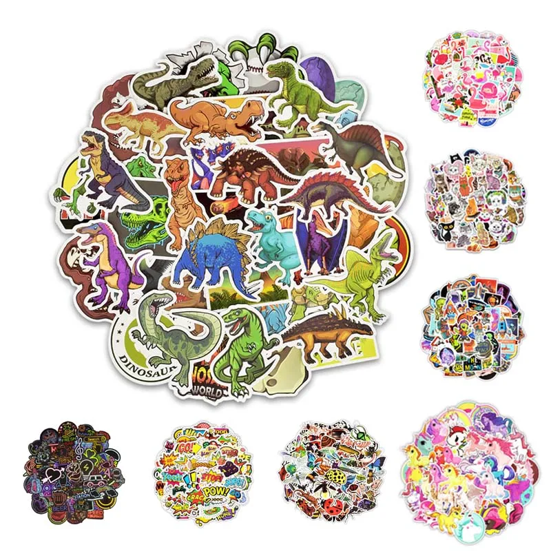 50 шт.пакет мультфильм ПВХ стикер динозаврЕдинорог пламенный без клея повторите паста детская Водонепроницаемый наклейка, сделай сам, скрапбукинг